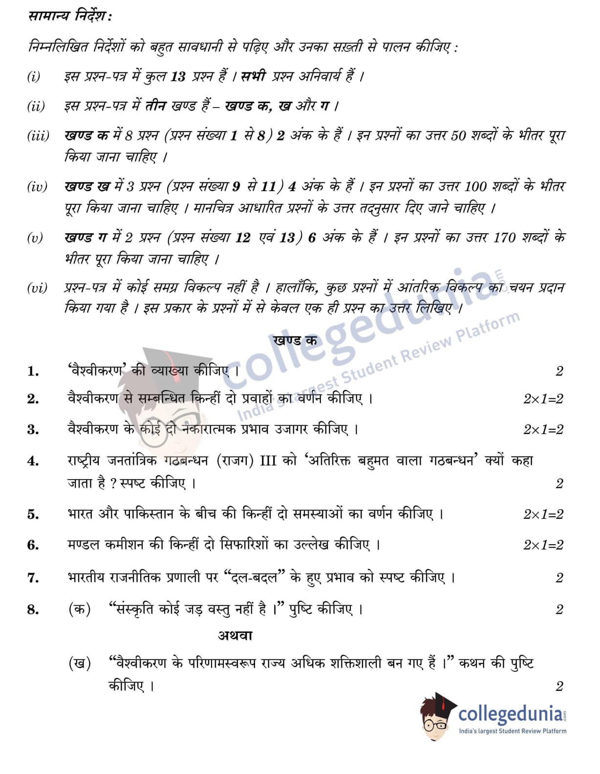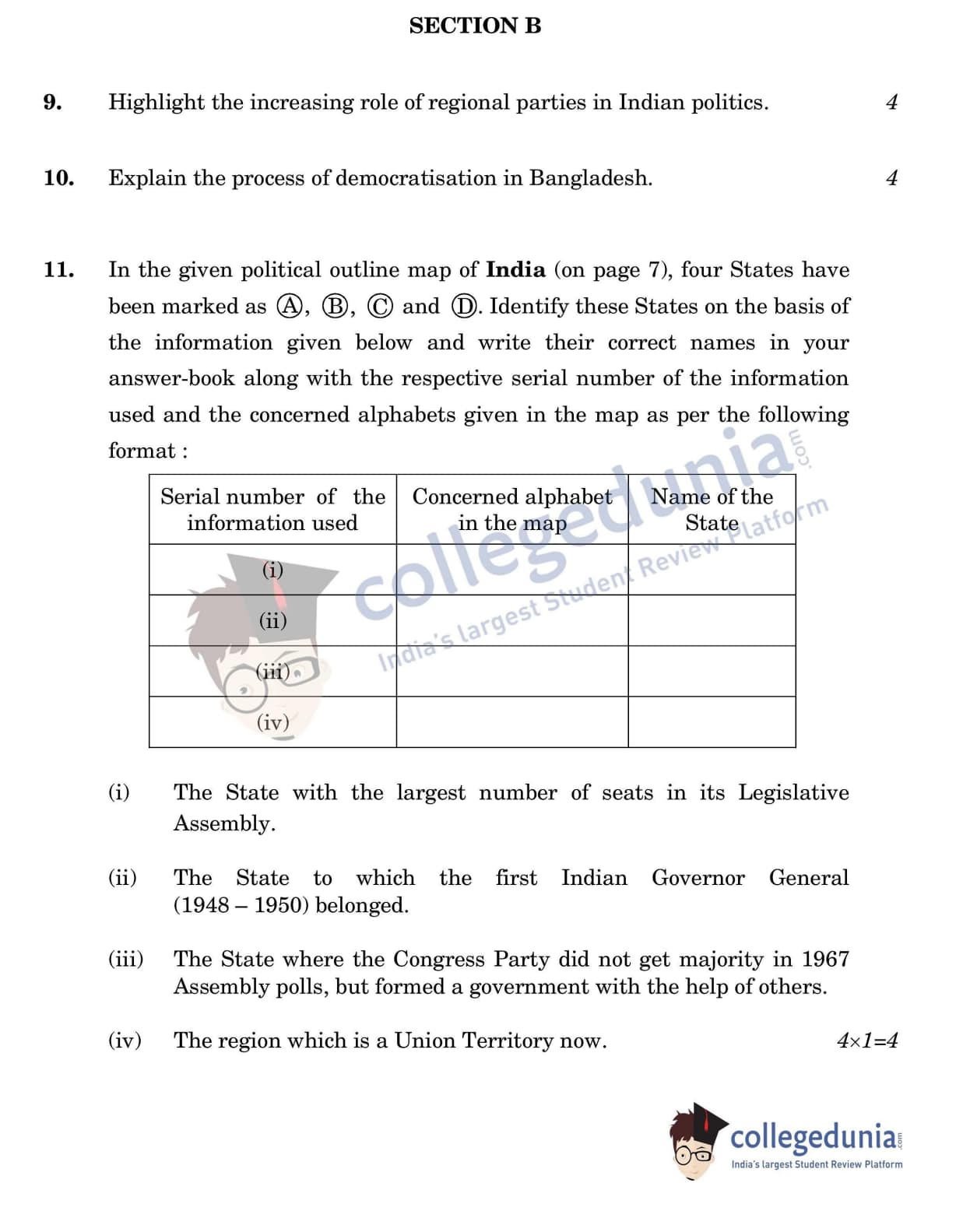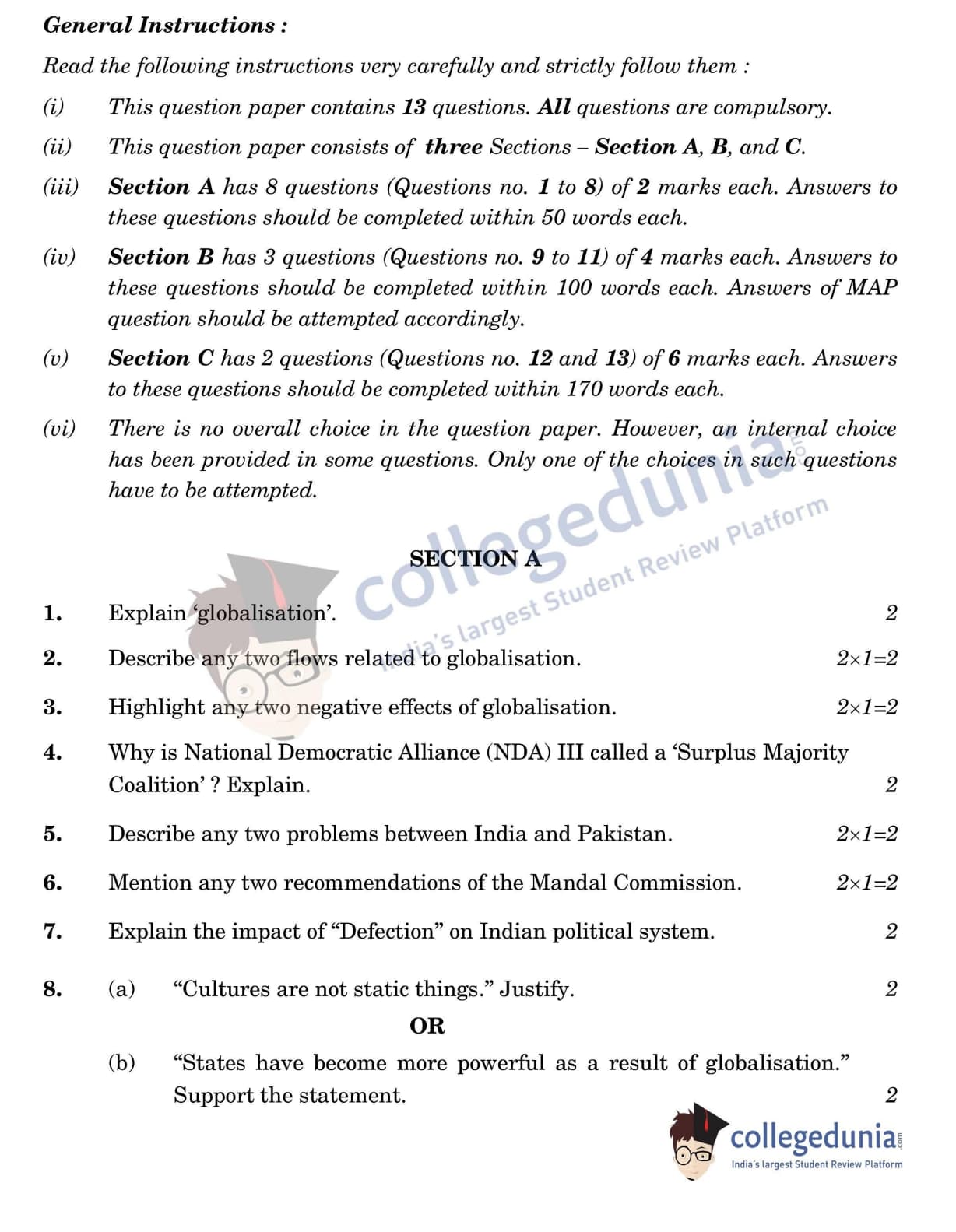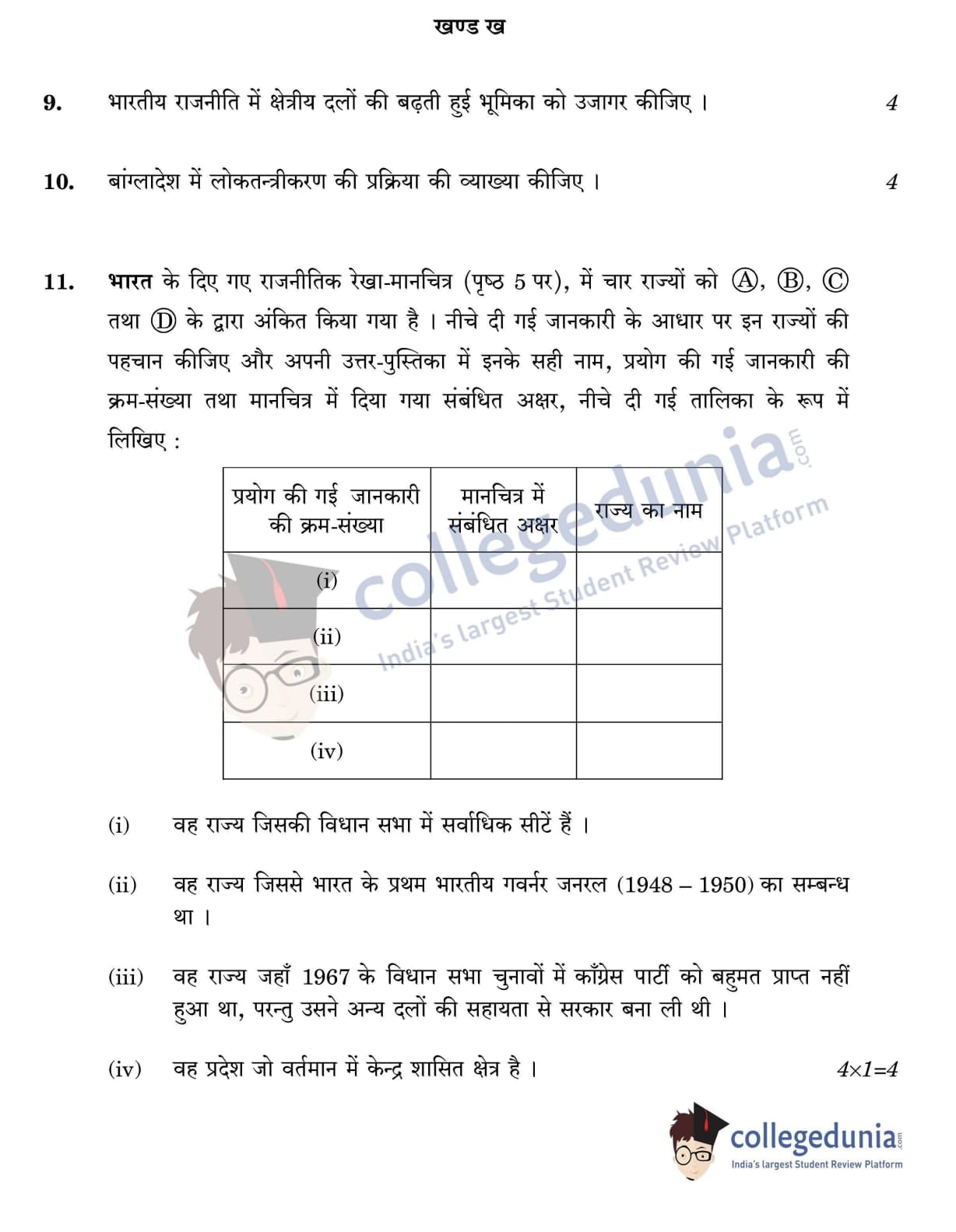 CBSE Class 12 Political Science Question Paper 2022 with Answer Key Set 2 - 59/4/2 (May 24)