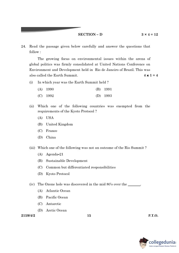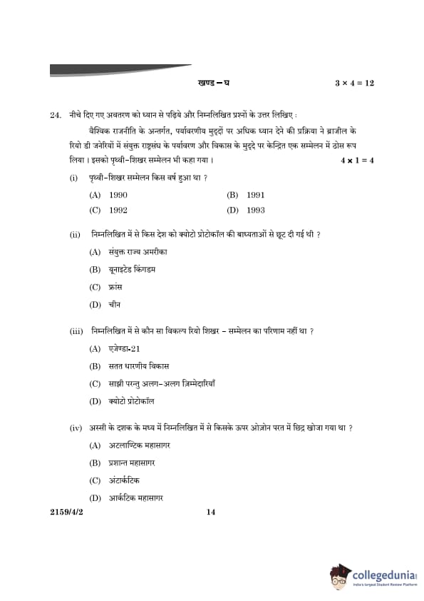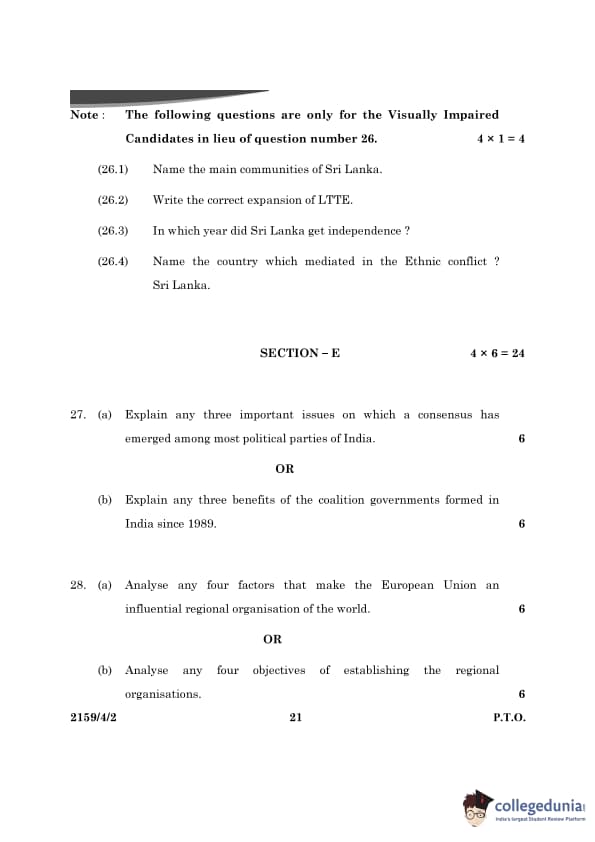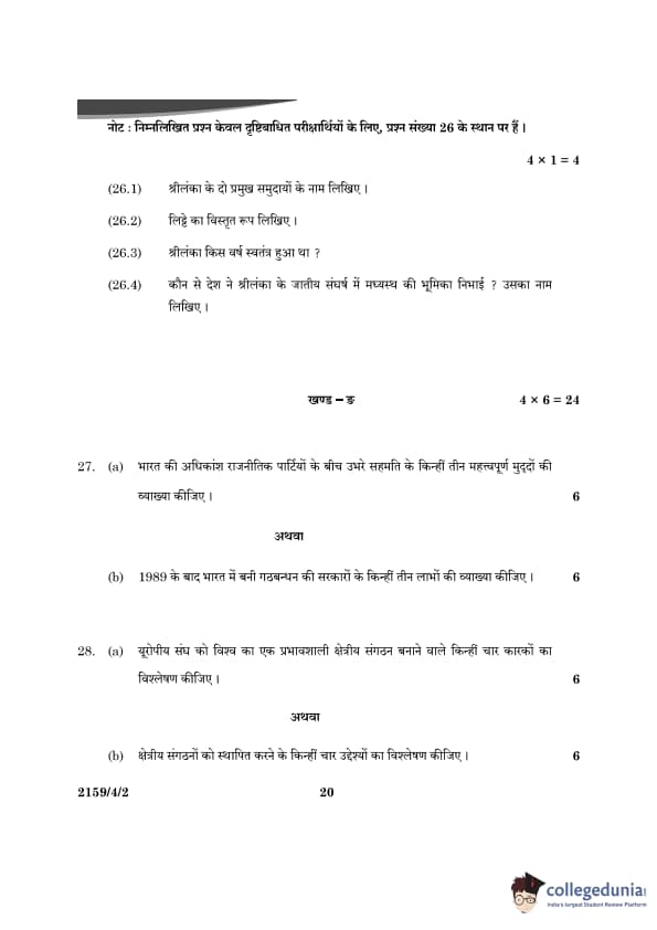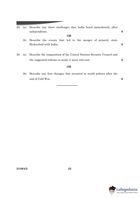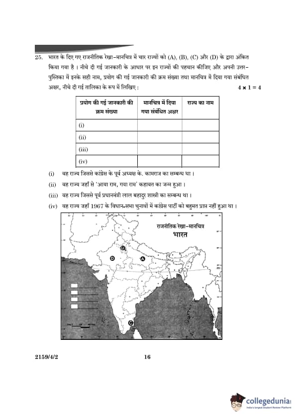 CBSE Class 12 Political Science Question Paper 2024 (Set 2- 59/4/2) with Answer Key