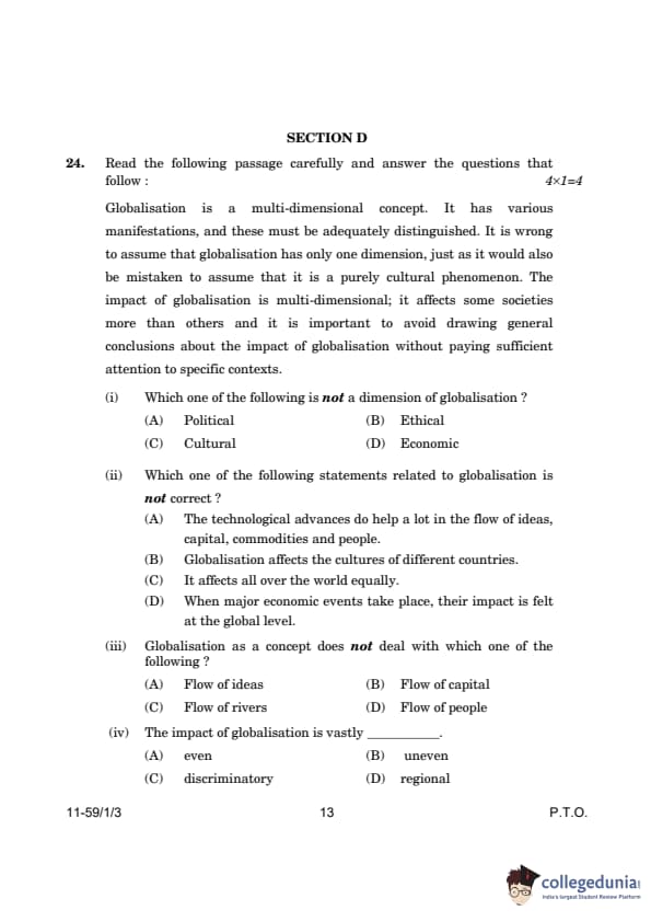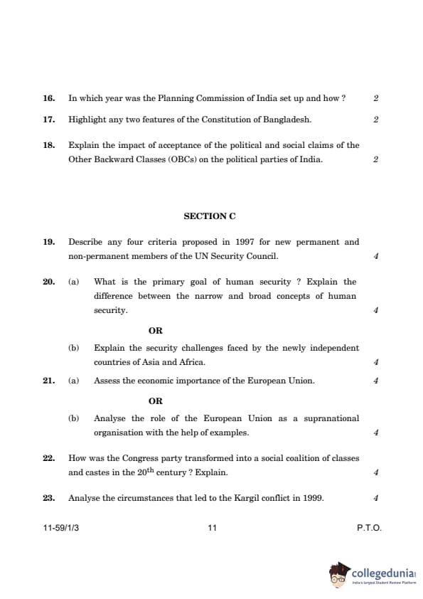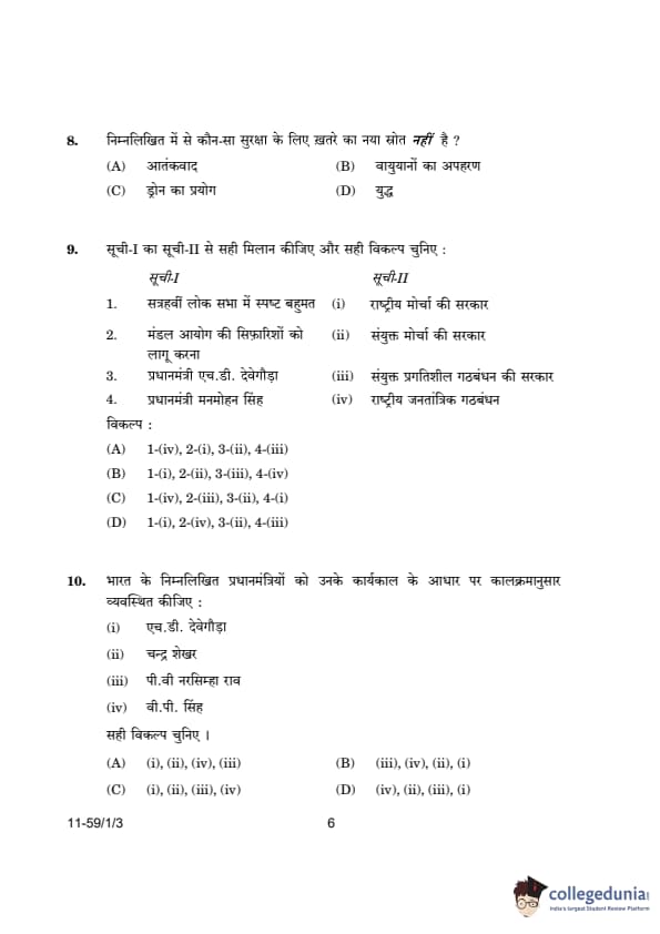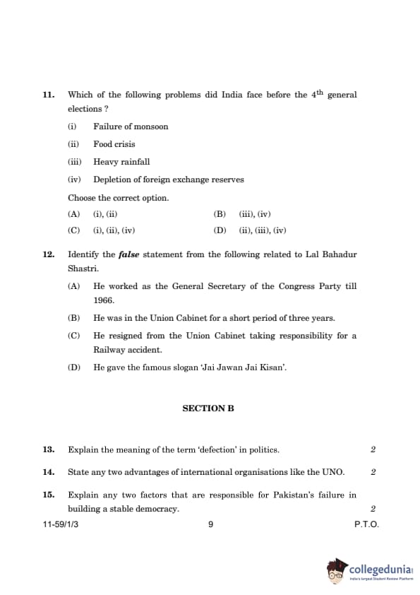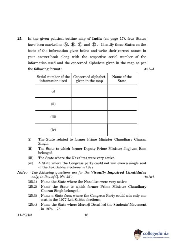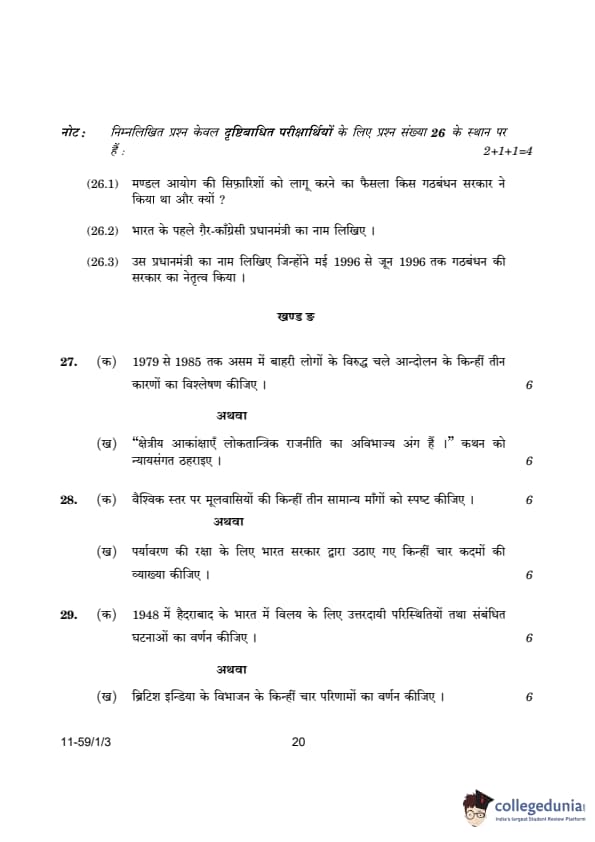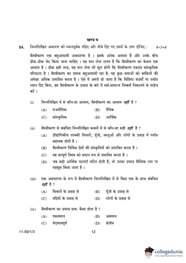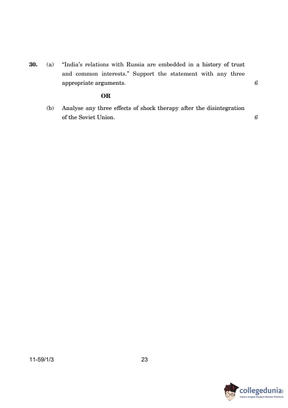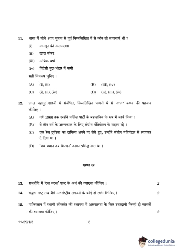 CBSE Class 12 Political Science Question Paper 2024 (Set 3- 59/1/3) with Answer Key