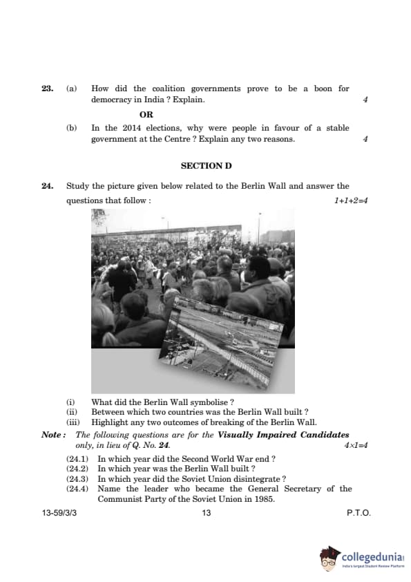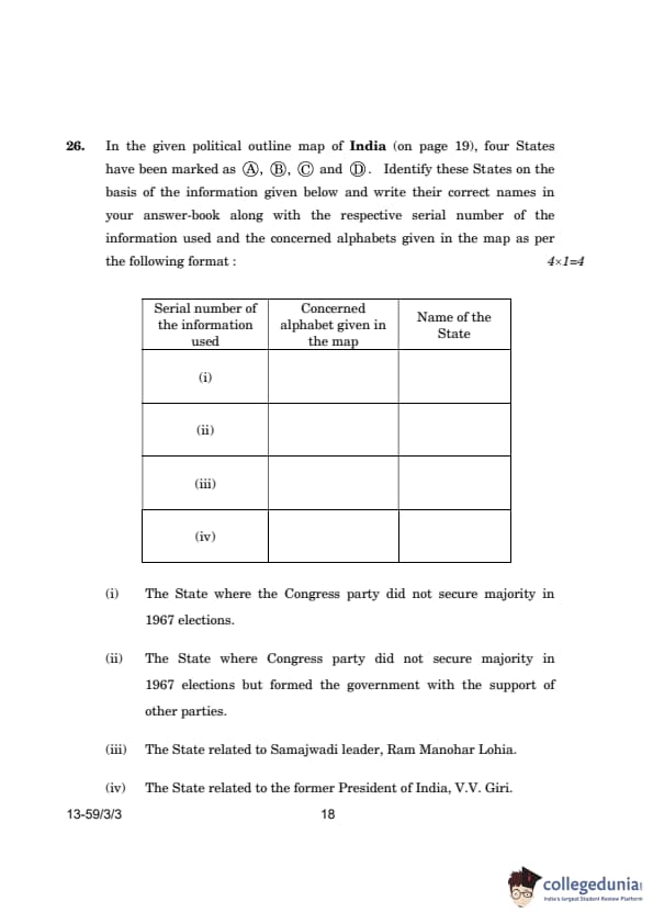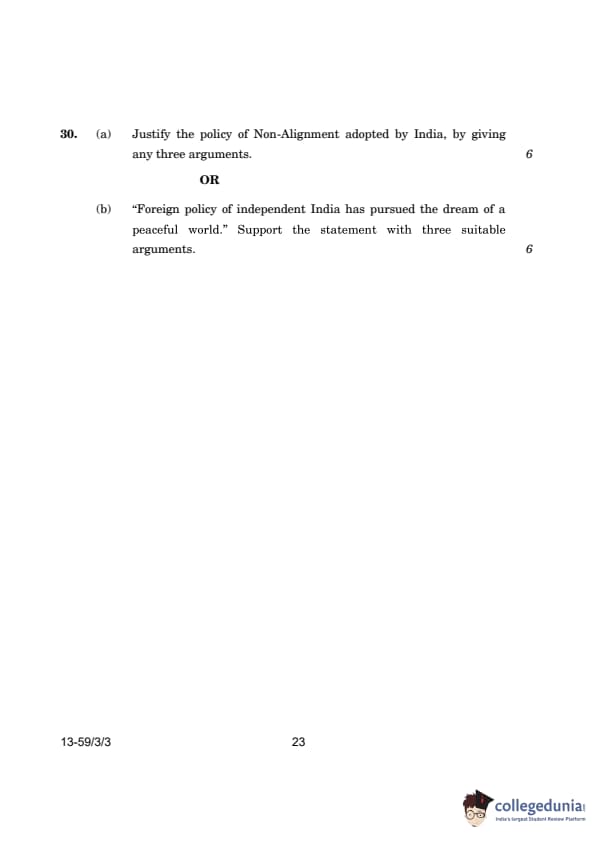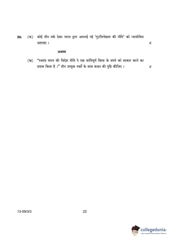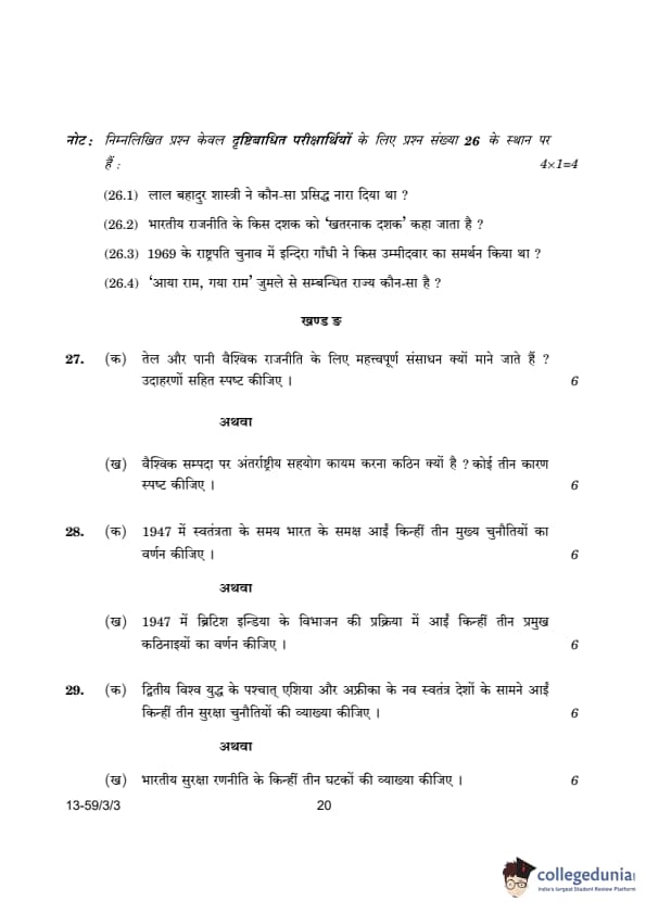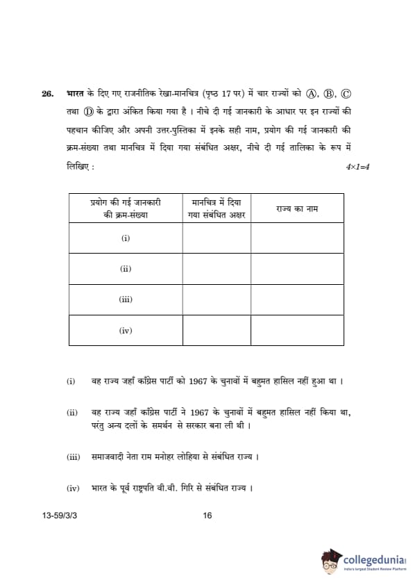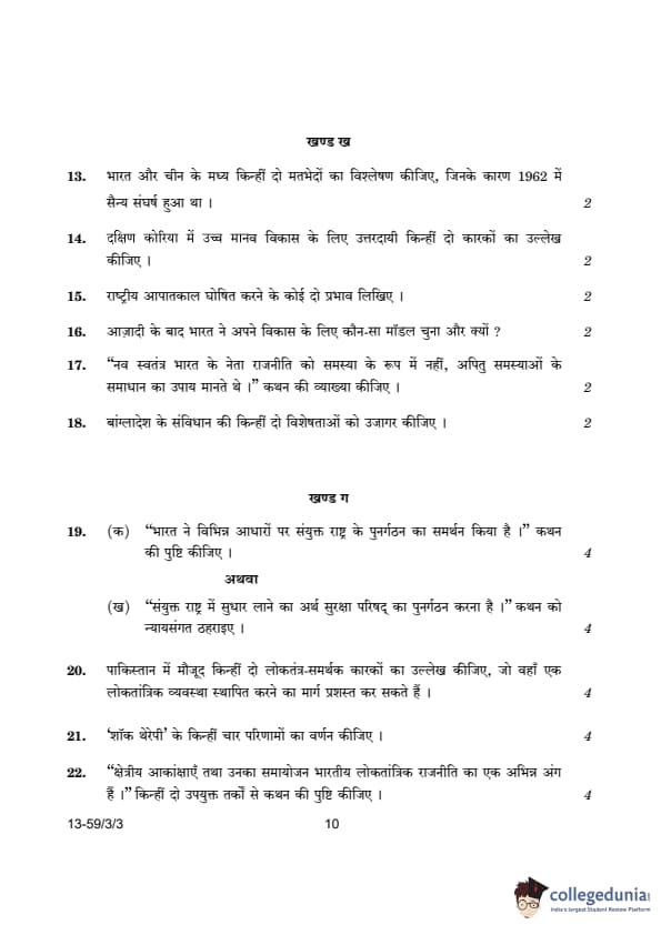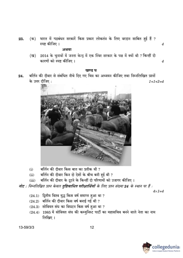 CBSE Class 12 Political Science Question Paper 2024 (Set 3- 59/3/3) with Answer Key