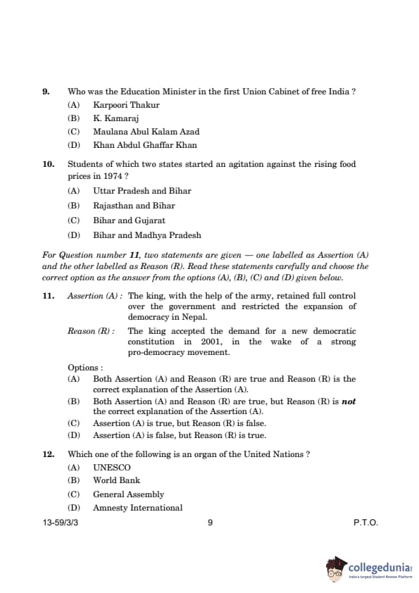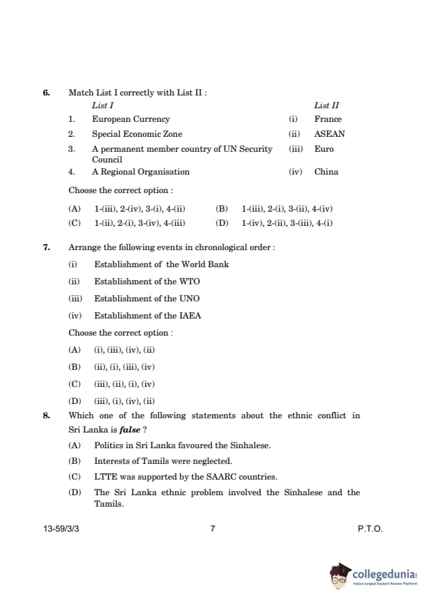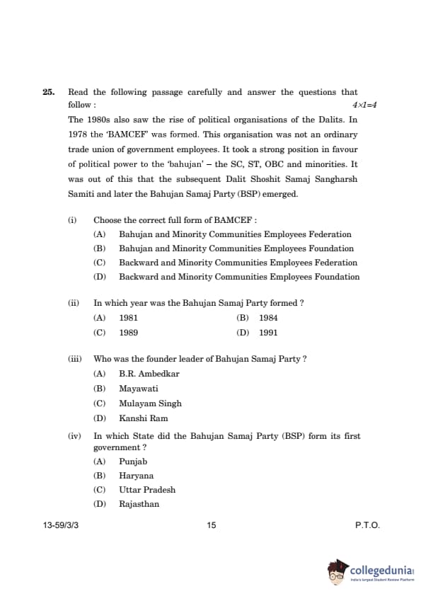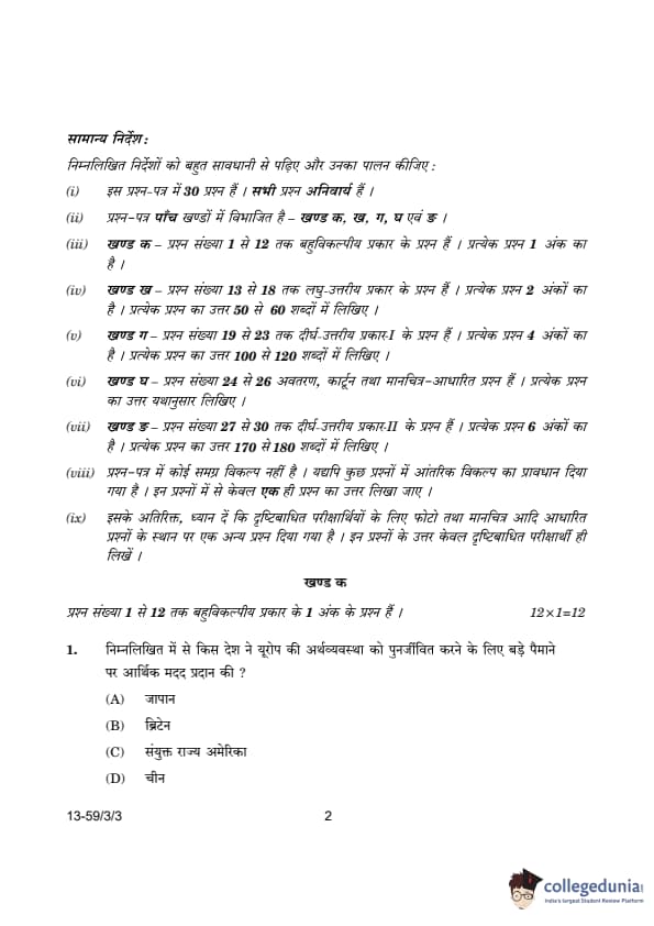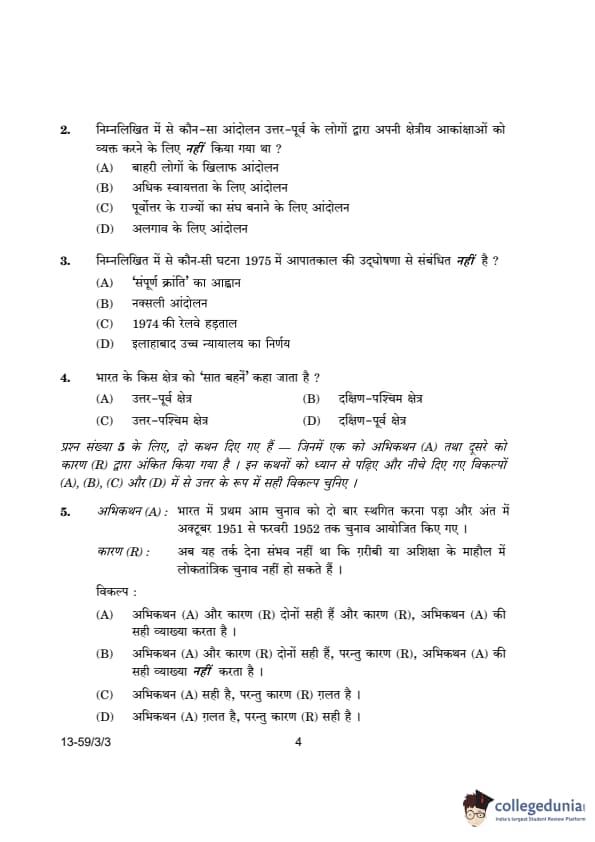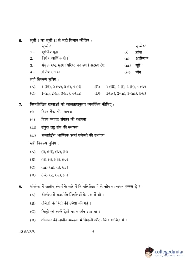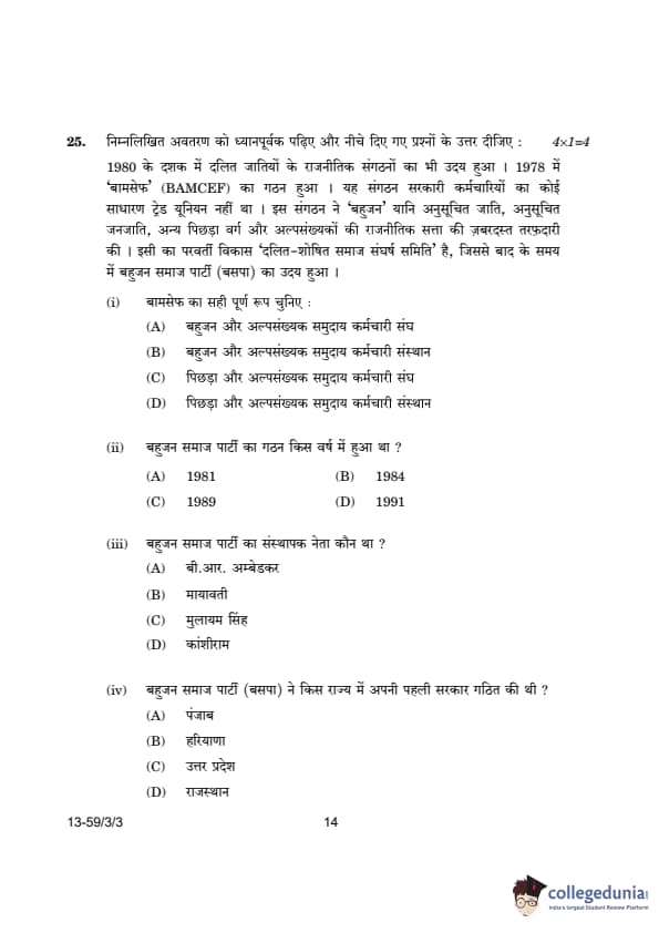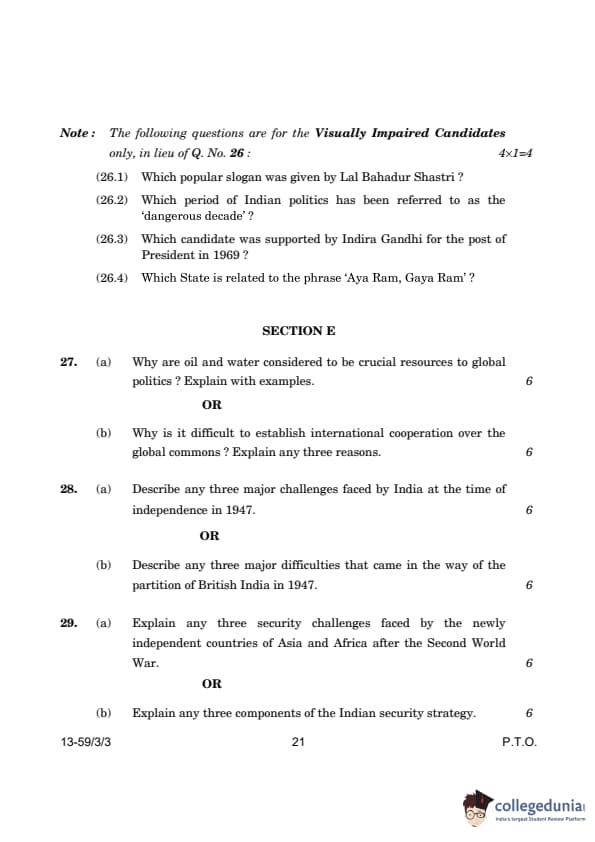 CBSE Class 12 Political Science Question Paper 2024 (Set 3- 59/3/3) with Answer Key