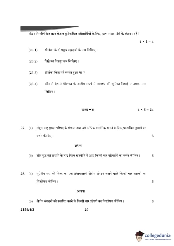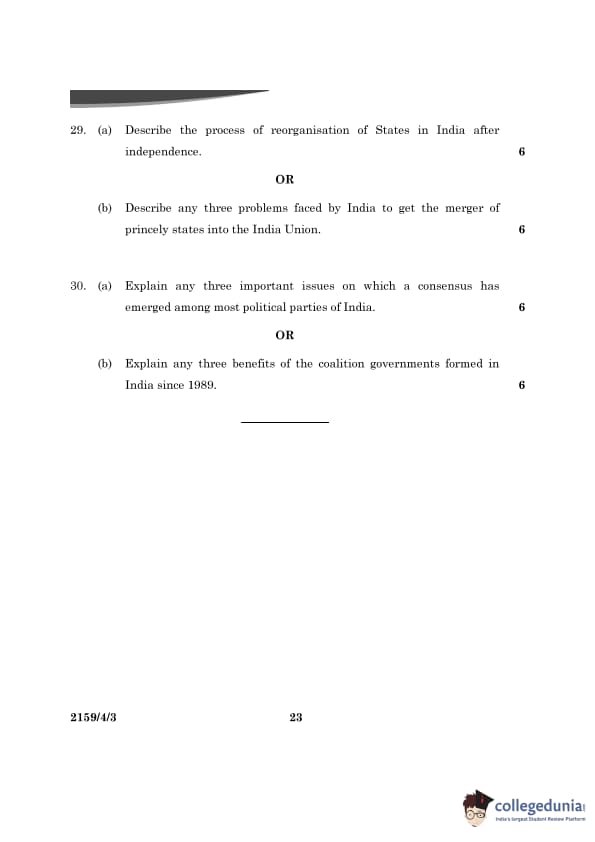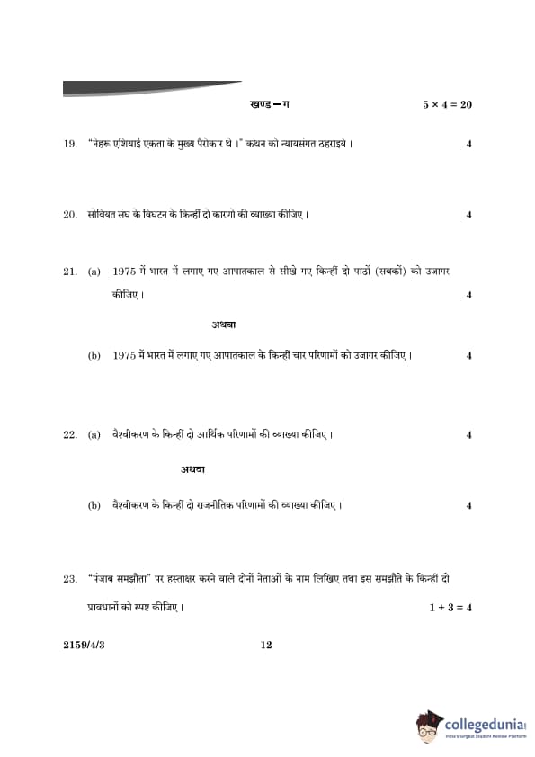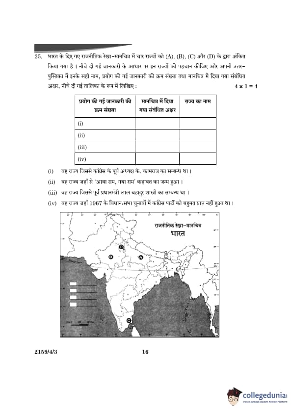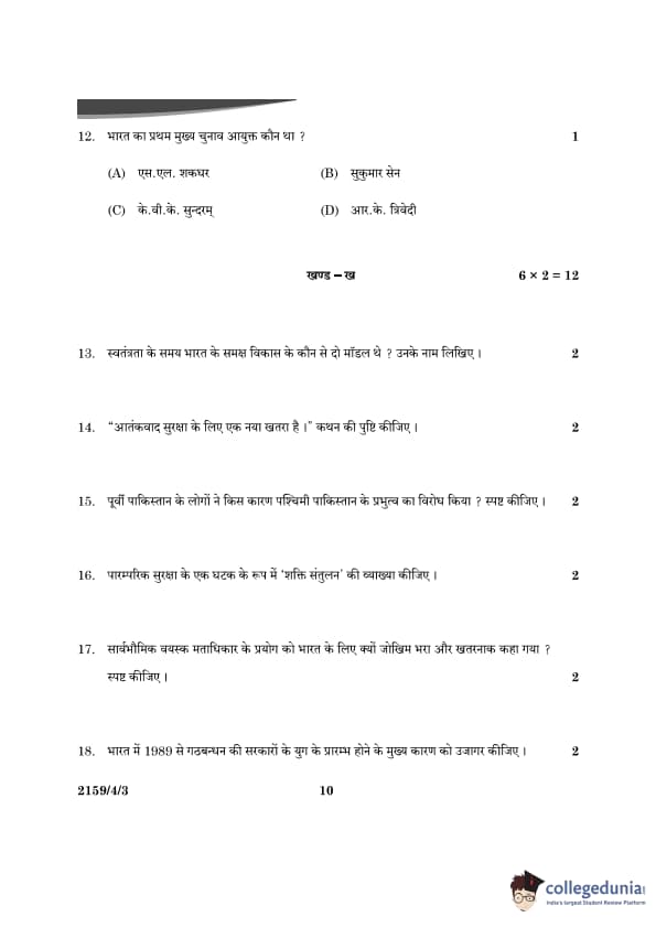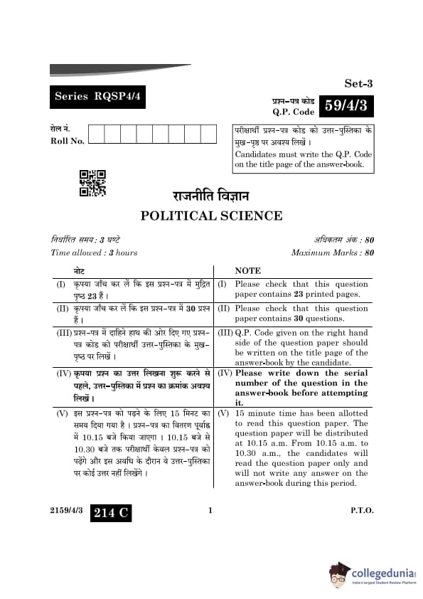 CBSE Class 12 Political Science Question Paper 2024 (Set 3- 59/4/3) with Answer Key