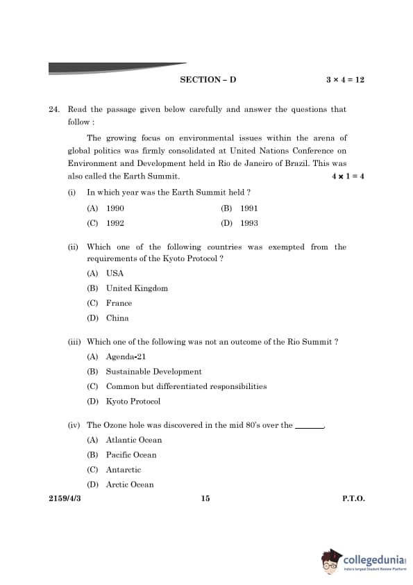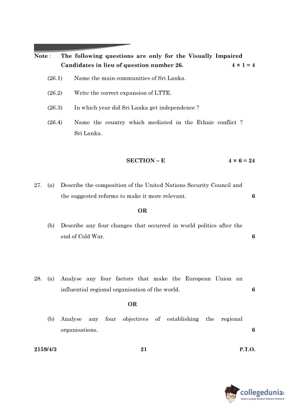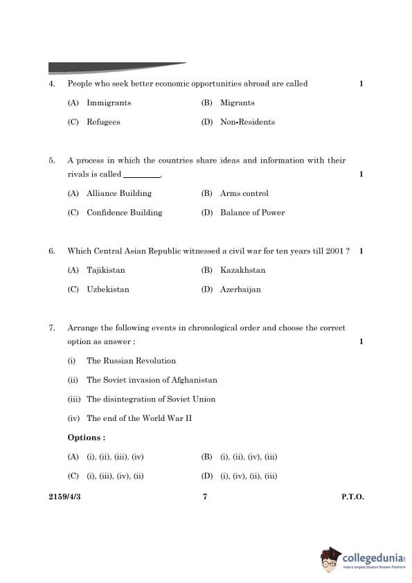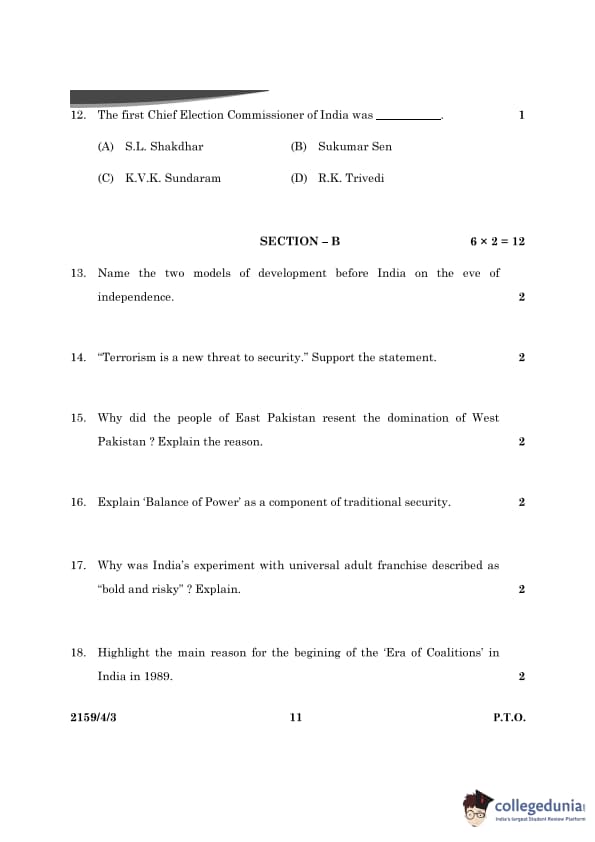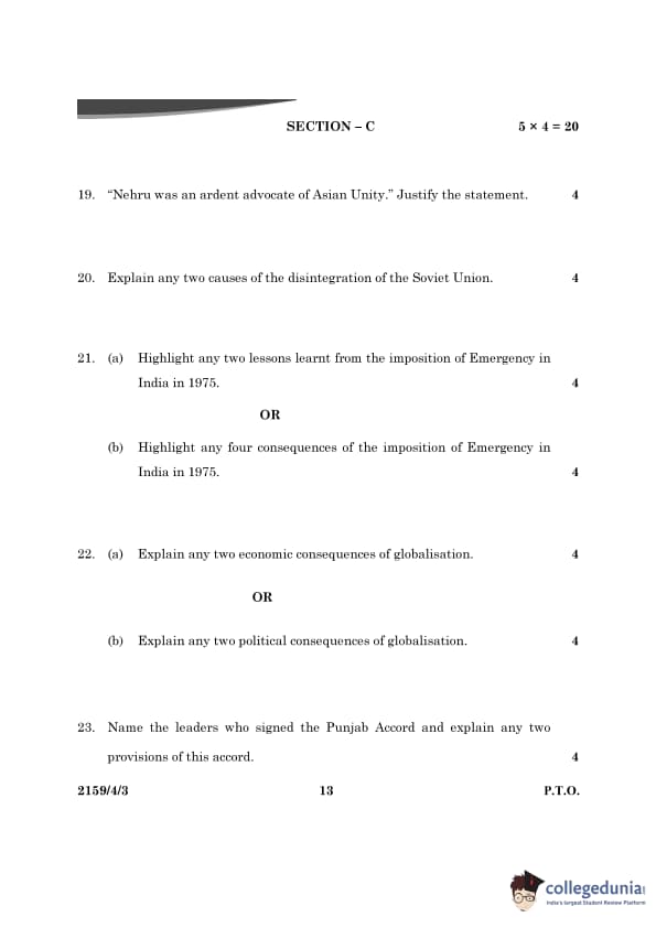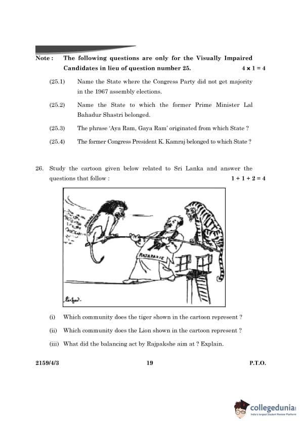 CBSE Class 12 Political Science Question Paper 2024 (Set 3- 59/4/3) with Answer Key