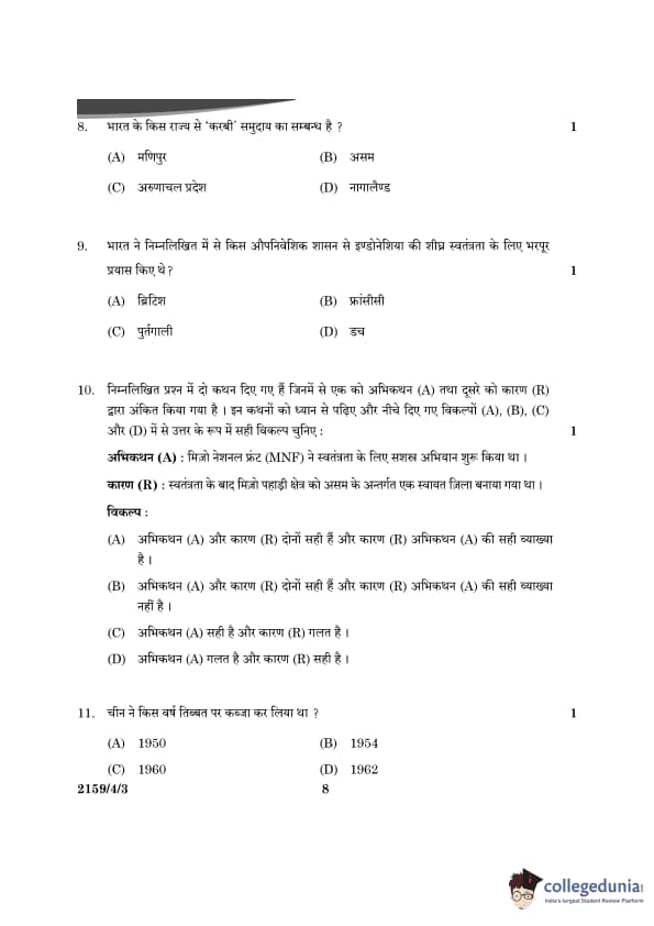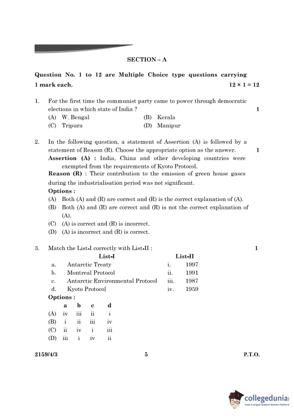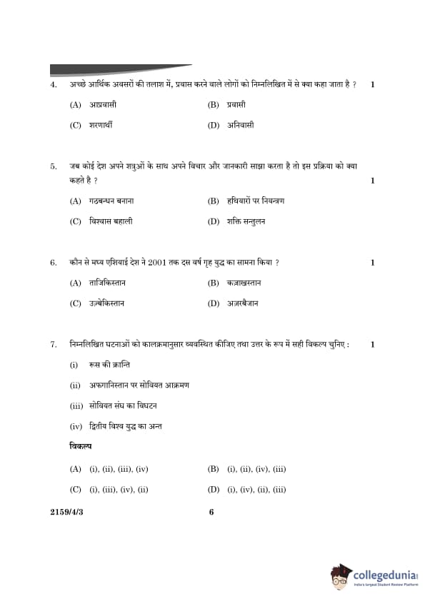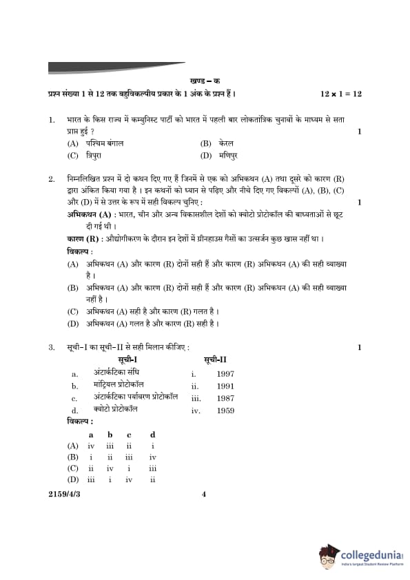 CBSE Class 12 Political Science Question Paper 2024 PDF (Set 3- 59/4/3) is available for download here. CBSE conducted the Political Science exam on March 22, 2024 from 10:30 AM to 1:30 PM. The total marks for the theory paper are 80. The question paper contains 20% MCQ-based questions, 40% competency-based questions, and 40% short and long answer type questions.