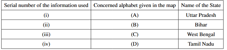 (iv) A State where the Congress party could not win even a single seat in the Lok Sabha elections in 1977: In the 1977 Lok Sabha elections, after the Emergency, the Congress party faced a major defeat in several states. In Tamil Nadu, the Congress won zero seats, as the state was dominated by regional parties like the DMK and AIADMK. So, (iv) corresponds to Tamil Nadu.