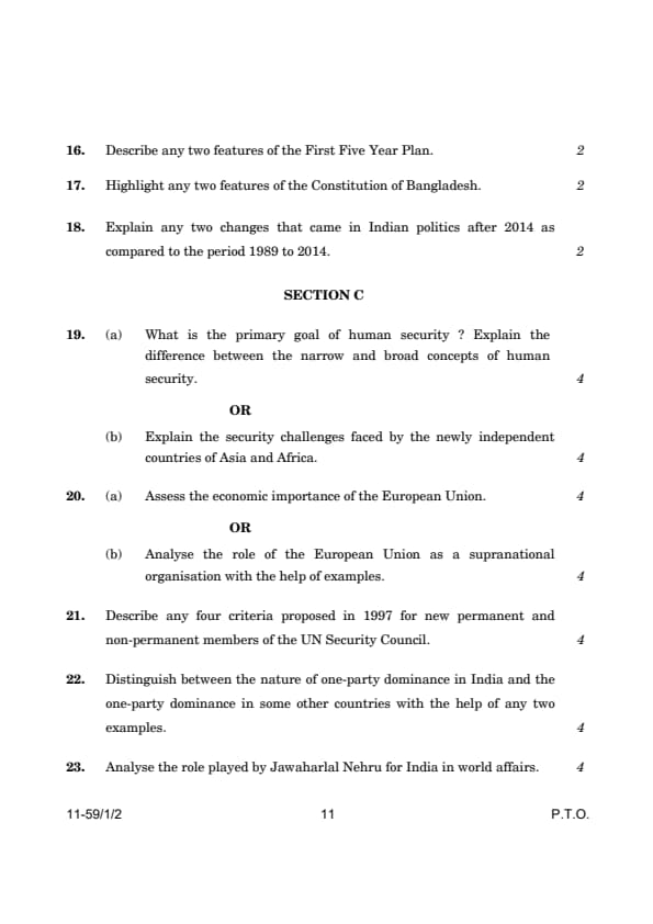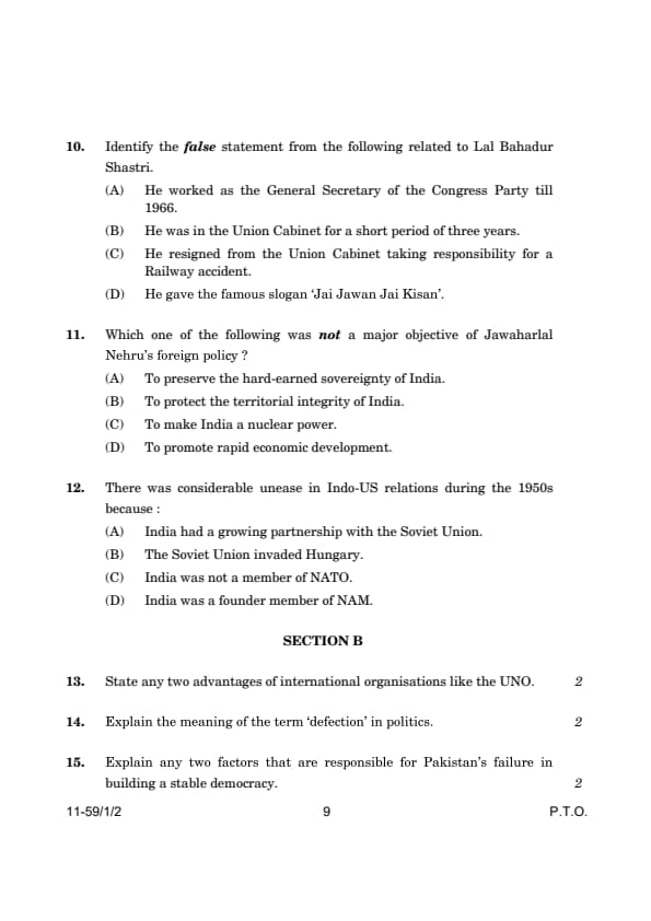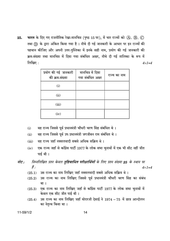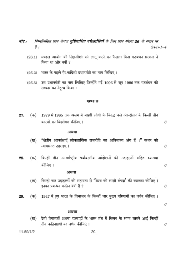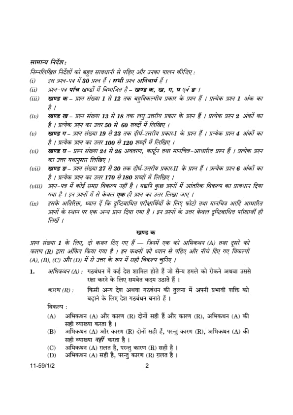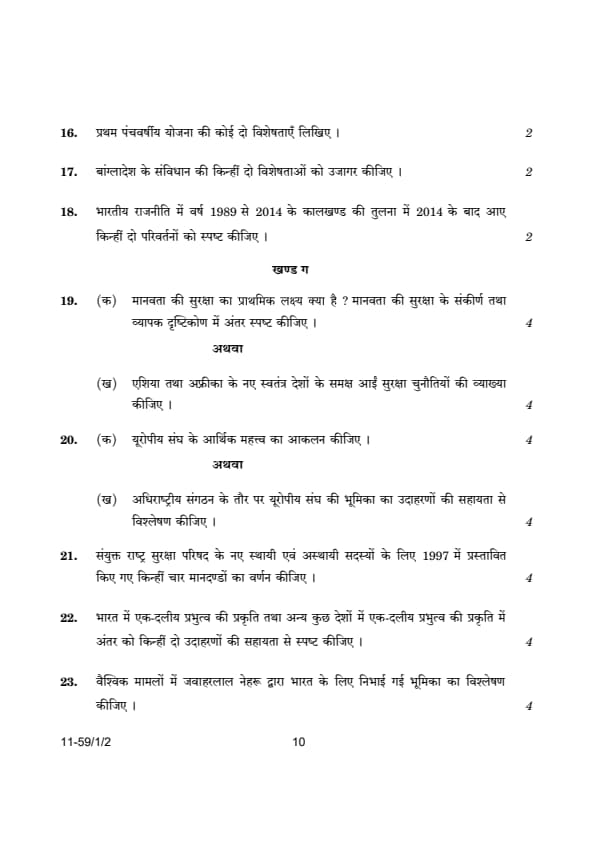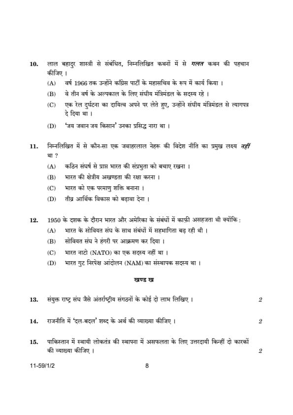 | CBSE Class 12 2024 Political Science Question Paper with Answer Key | Check Solution |