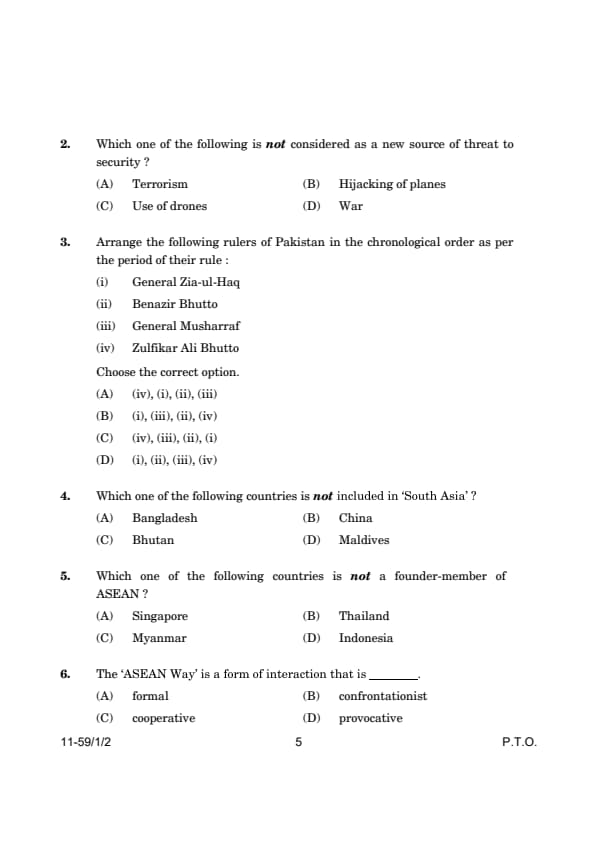 Option (C): (iv), (iii), (i), (ii) – Incorrect, as Musharraf ruled after Zia-ul-Haq and Benazir Bhutto.