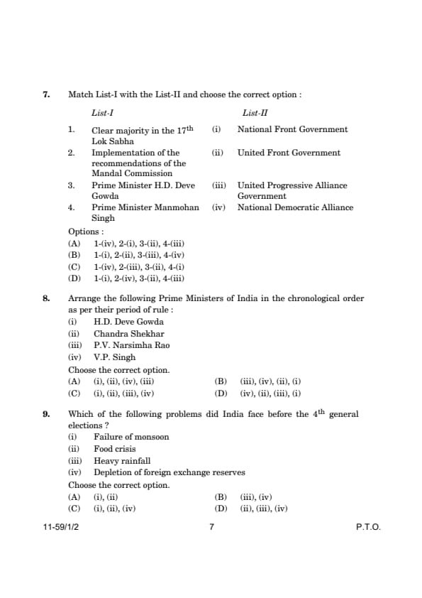 2. Implementation of the Mandal Commission: The Mandal Commission recommendations (on reservations for OBCs) were implemented in 1990 under the United Progressive Alliance Government, led by V.P. Singh. So, 2 matches with (iii) United Progressive Alliance Government.