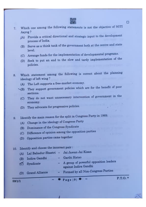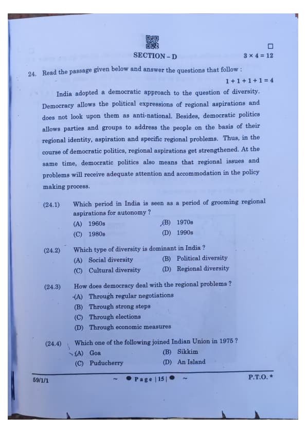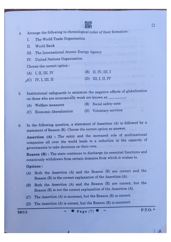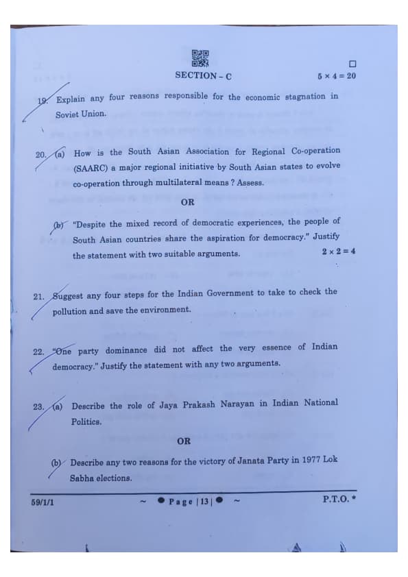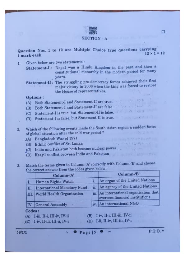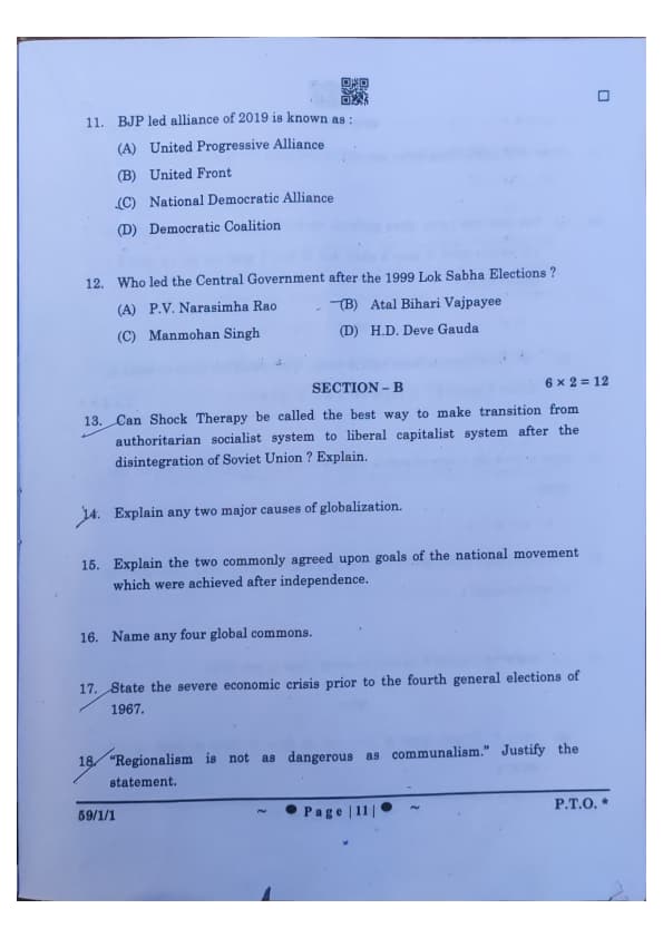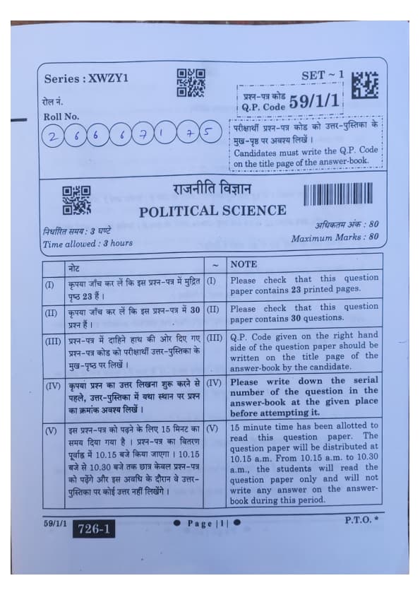 CBSE Class 12 Political Science Question Paper 2025 (Set 1- 59/1/1) with Answer Key