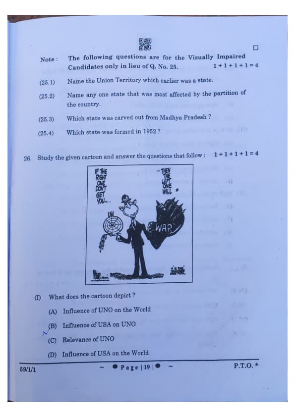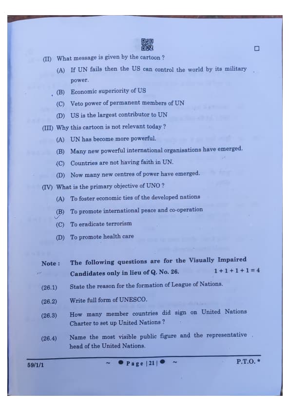 Note: The following questions are for the Visually Impaired Candidates only in lieu of Q. No. 26.