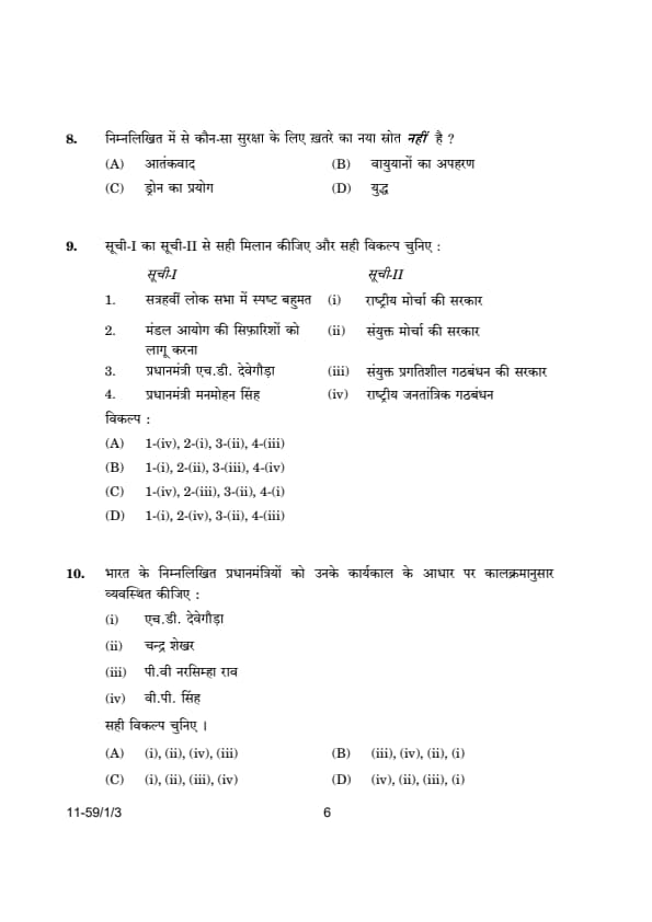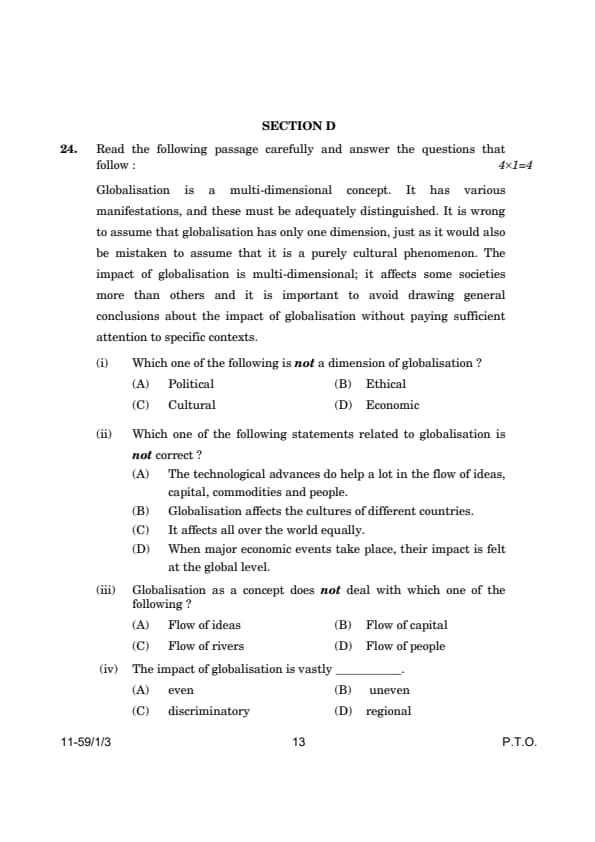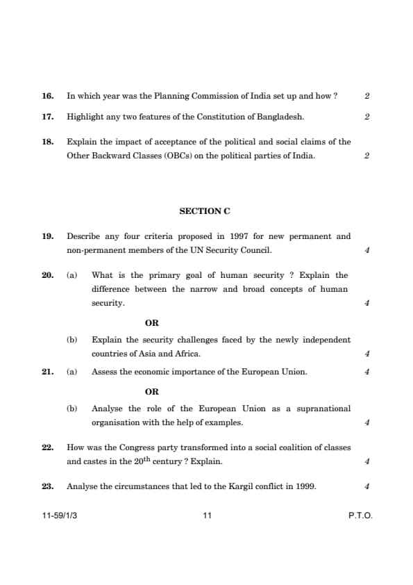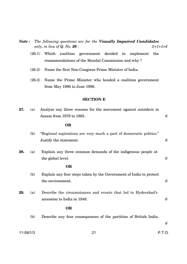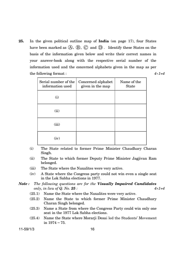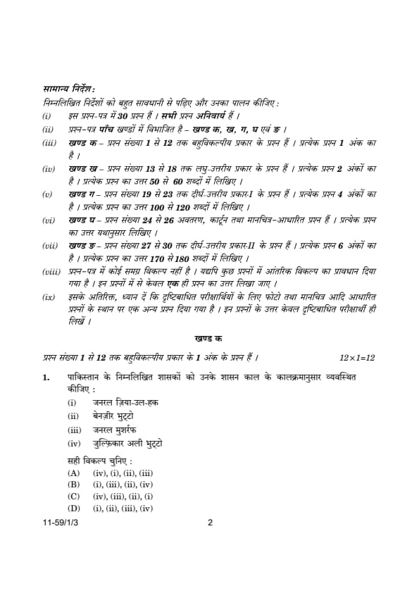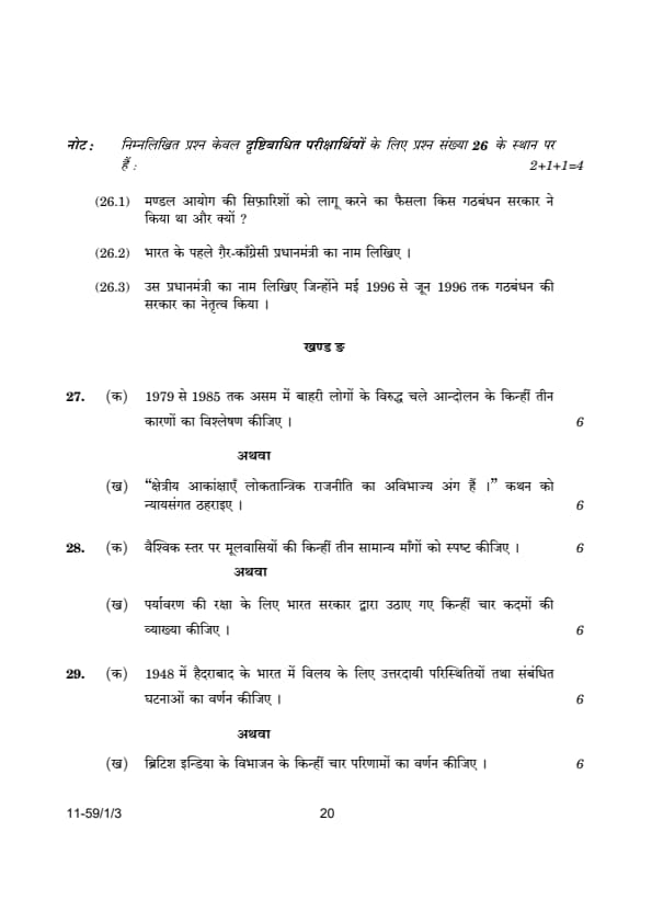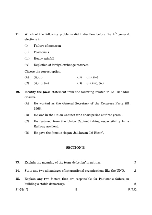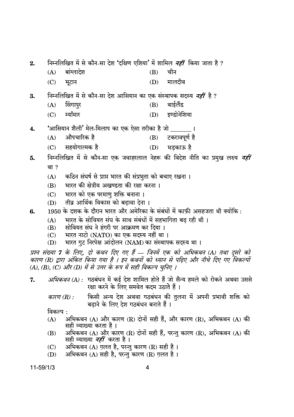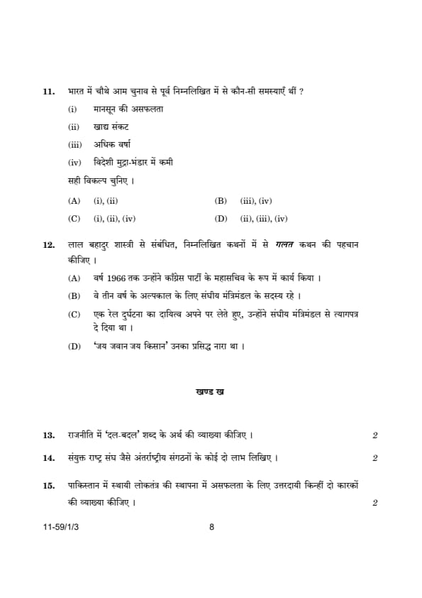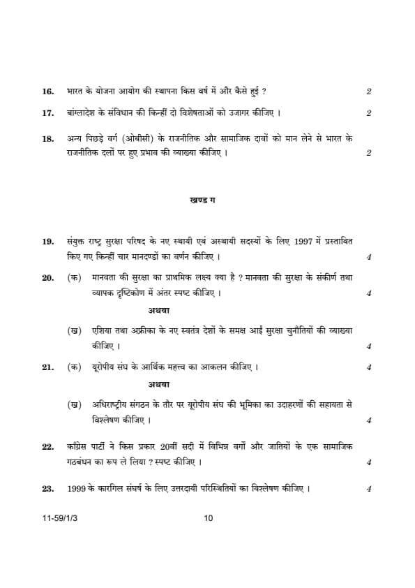 CBSE Class 12 Political Science (59/1/3) Question Paper 2024 with Answer Key