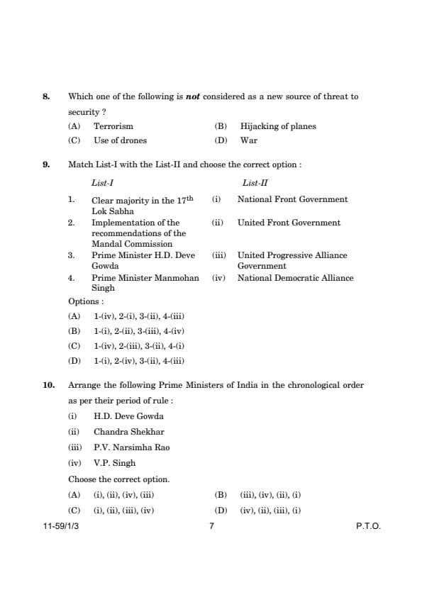 The correct answer is: \[ (D) War \] Quick Tip: When identifying new sources of threat, focus on emerging or non-traditional issues like technology-driven threats, rather than conventional ones like war.