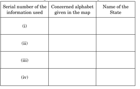 In the given political outline map of India, four States have been marked as A, B, C and D. Identify these States on the basis of the information given below and write their correct names along with the concerned alphabet.