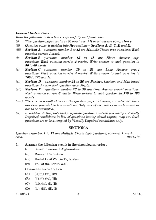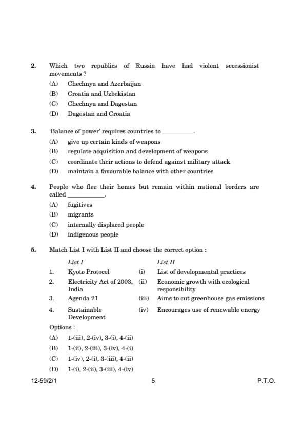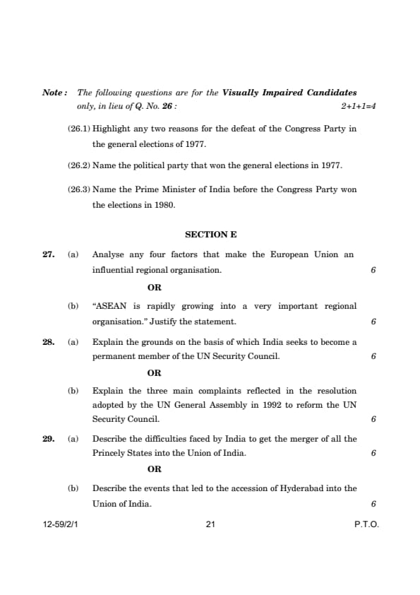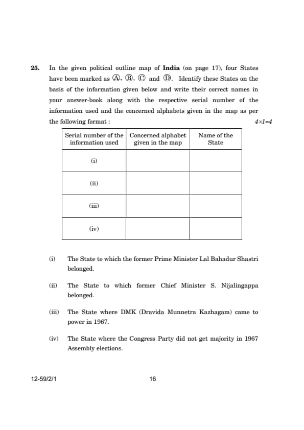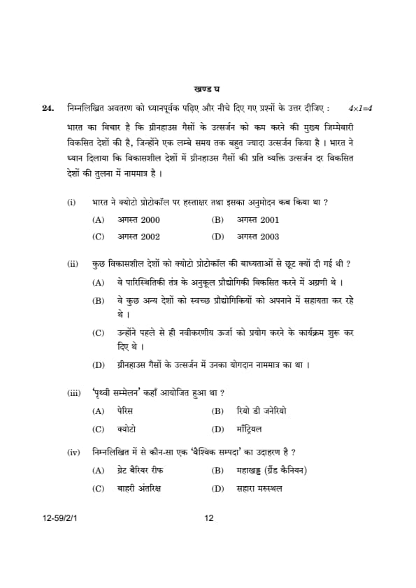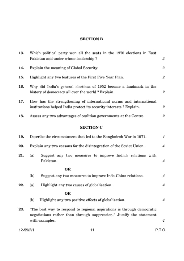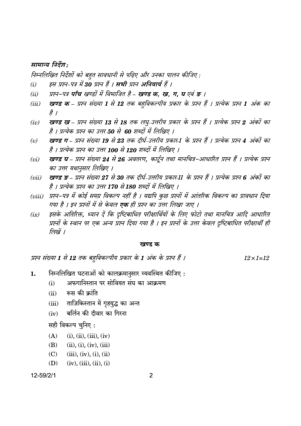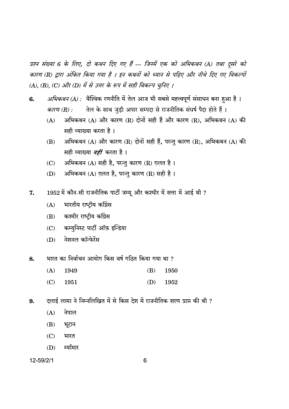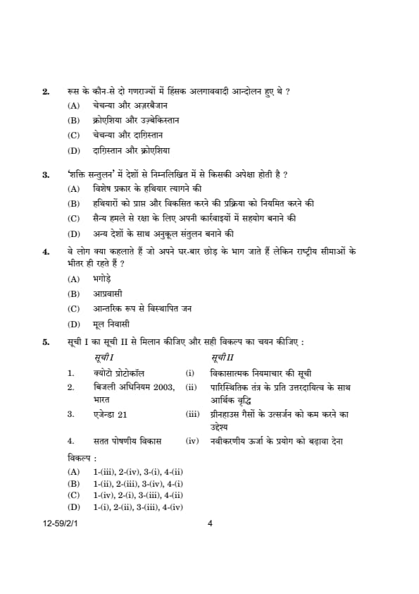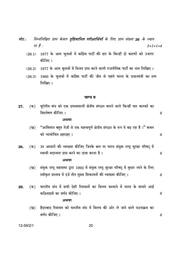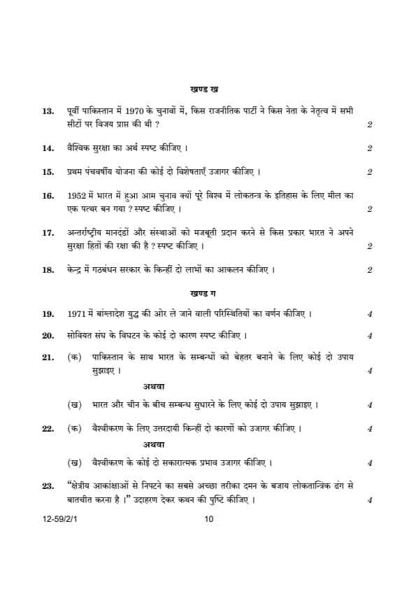 CBSE Class 12 Political Science (59/2/1) Question Paper 2024 with Answer Key