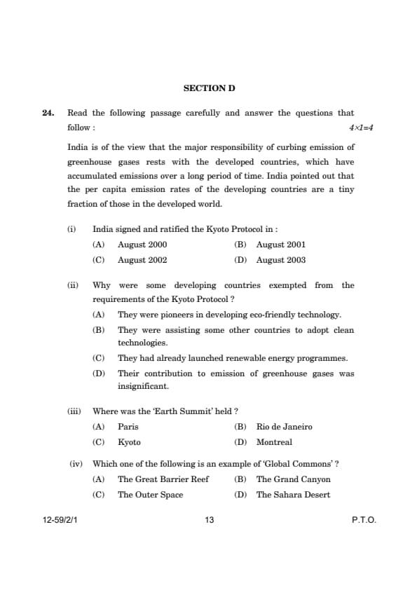 Kyoto Protocol – It is an international treaty that aims to cut greenhouse gas emissions. So, 1 → (iii).