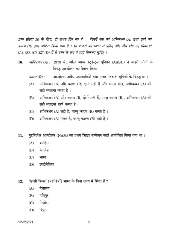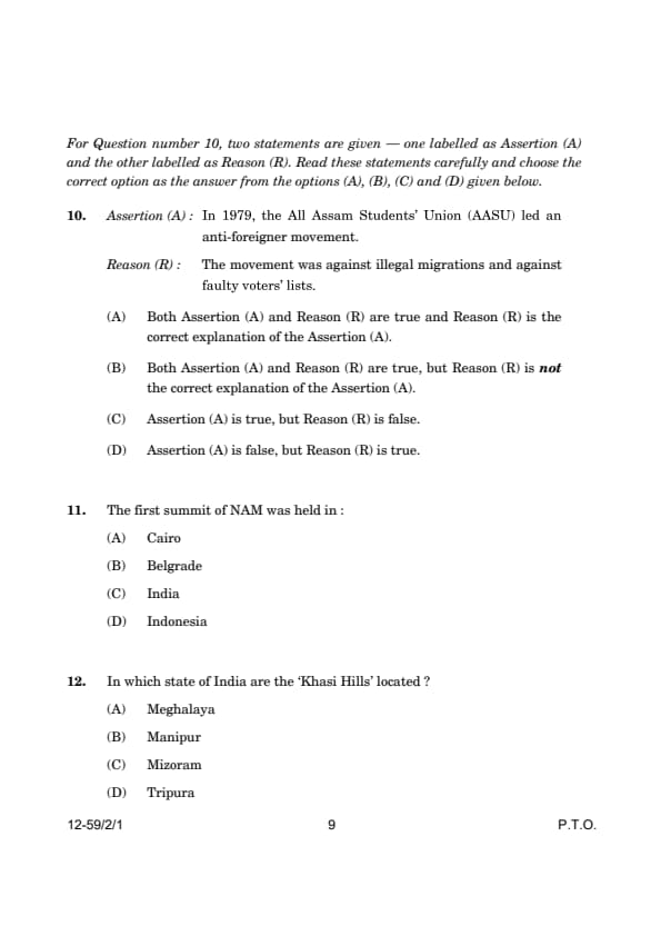 Assertion (A): In 1979, the All Assam Students’ Union (AASU) led an anti-foreigner movement.