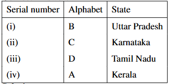 In the given political outline map of India, four States have been marked as A, B, C and D. Identify these States on the basis of the information given below and write their correct names along with the concerned alphabet given in the map as per the following format :