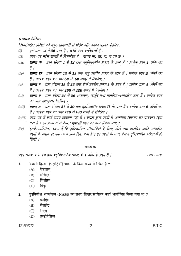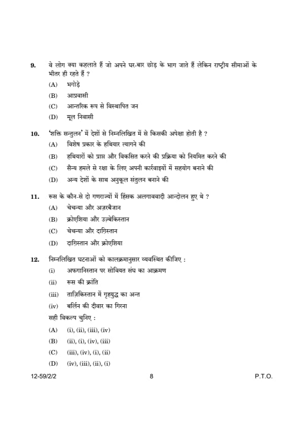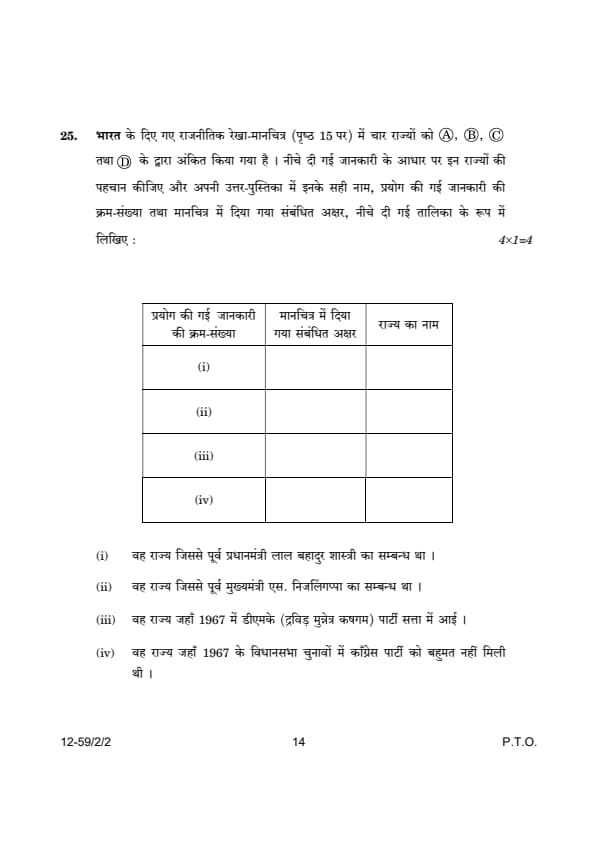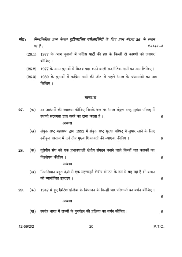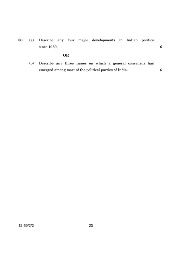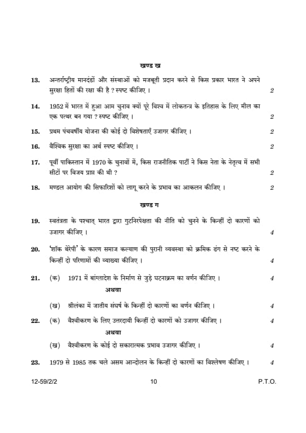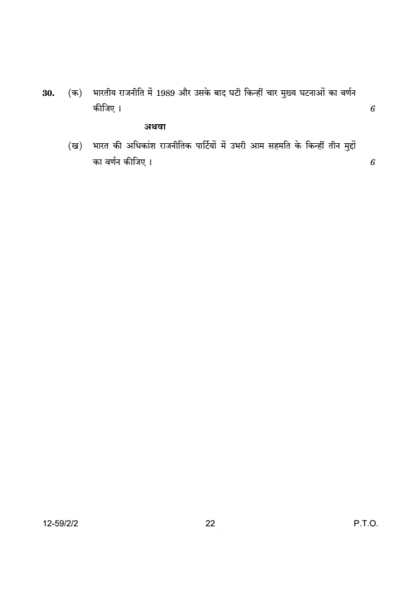 CBSE Class 12 Political Science (59/2/2) Question Paper 2024 with Answer Key