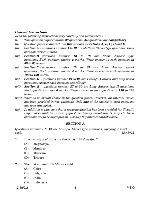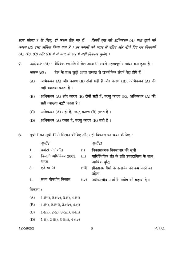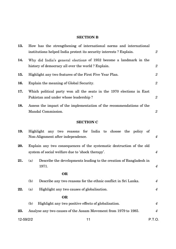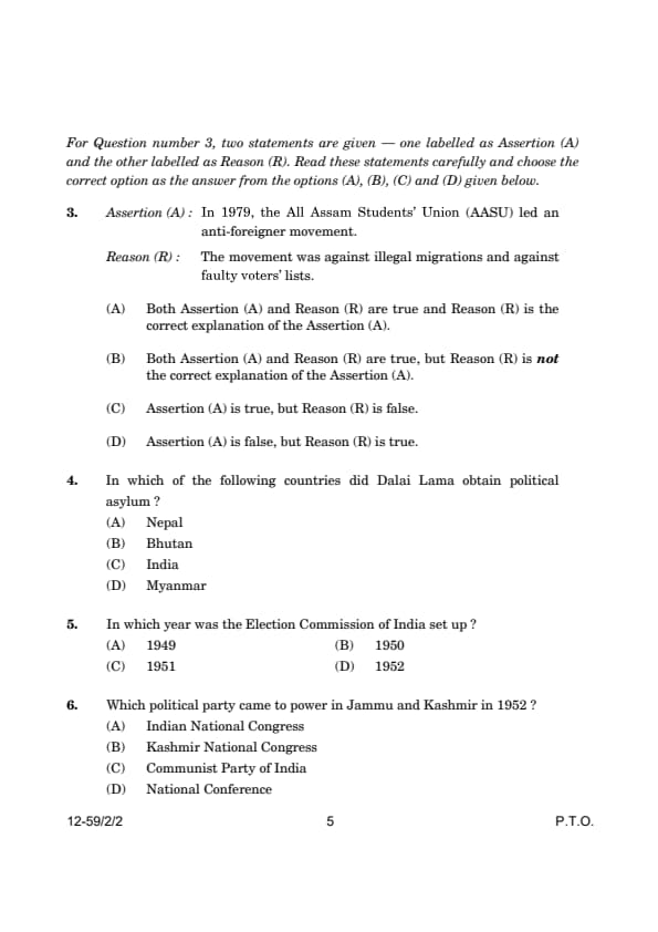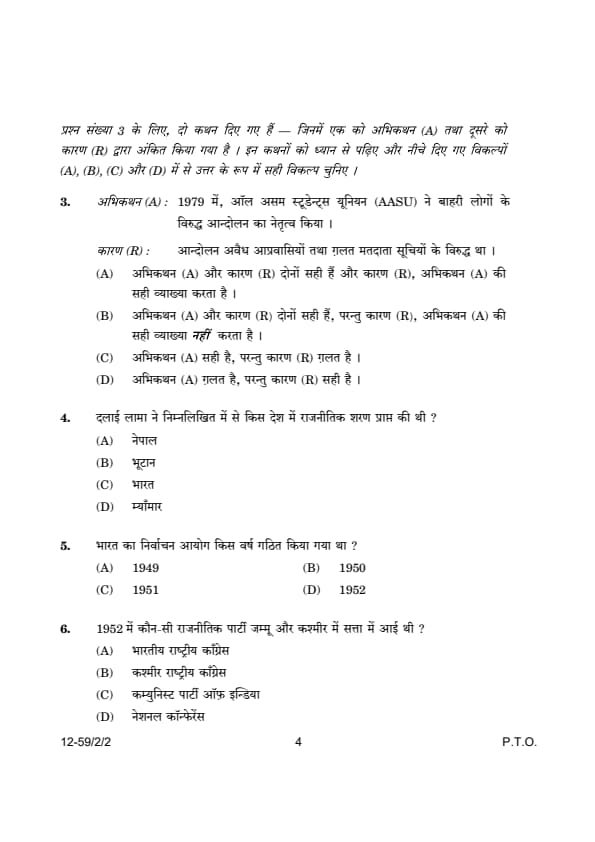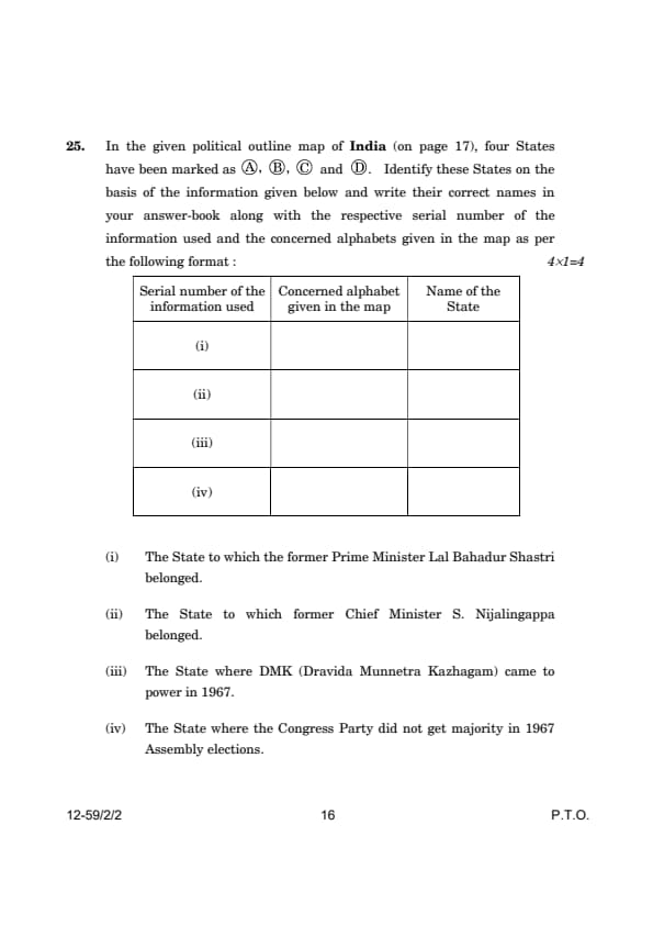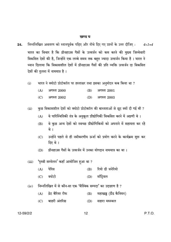 CBSE Class 12 Political Science (59/2/2) Question Paper 2024 with Answer Key