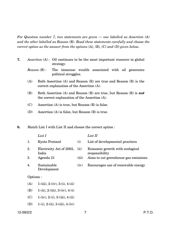Furthermore, Reason (R) correctly explains Assertion (A) as the strategic importance of oil is directly tied to the political struggles arising from the wealth it brings. Quick Tip: For Assertion and Reason questions, always check if both statements are individually true and whether the Reason directly explains the Assertion.