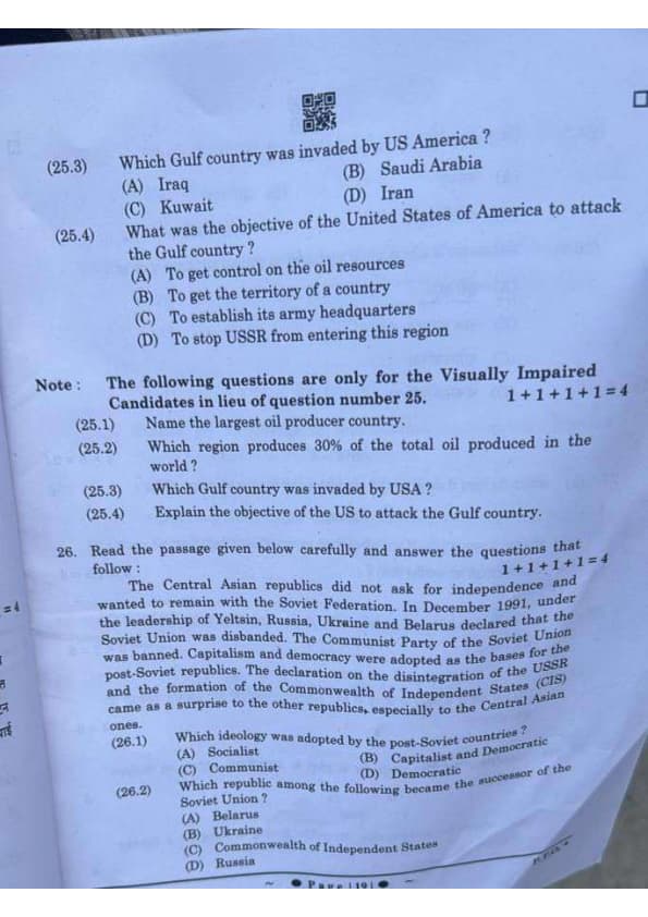 Note: The following questions are for the Visually Impaired Candidates only in lieu of question number 25.