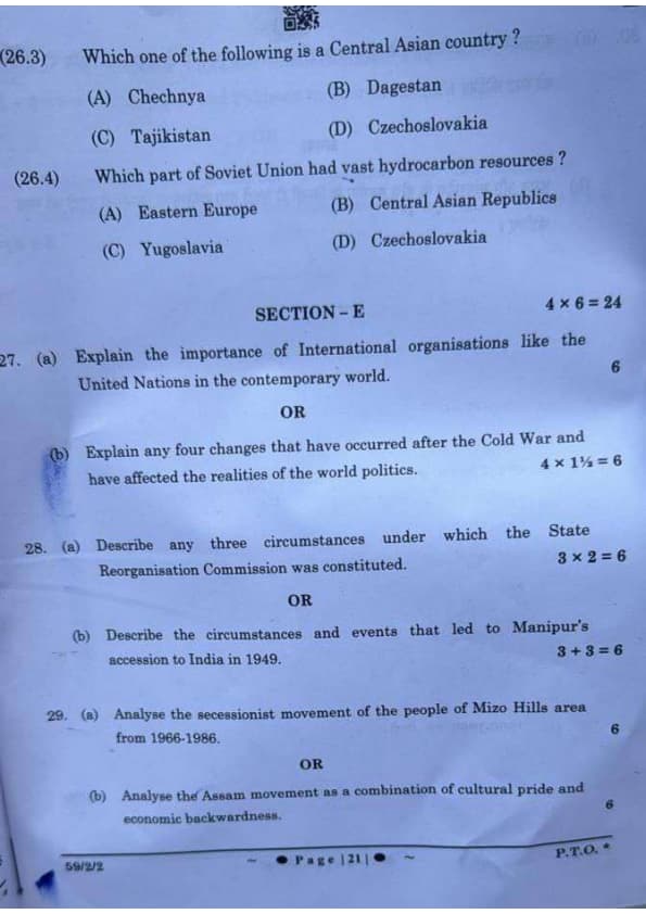CBSE Class 12 Political Science (59/2/2) Question Paper 2025 with Answer Key