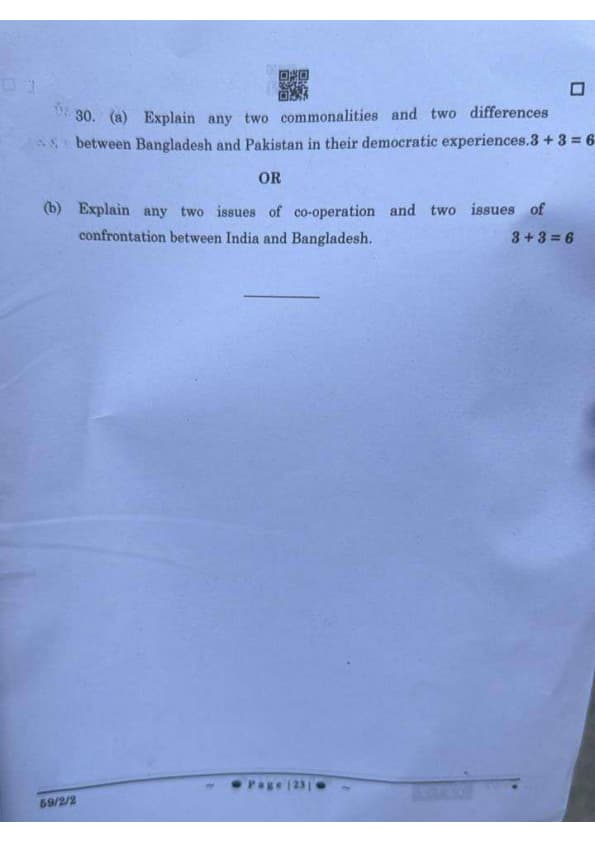 (a) Explain any two commonalities and two differences between Bangladesh and Pakistan in their democratic experiences.
