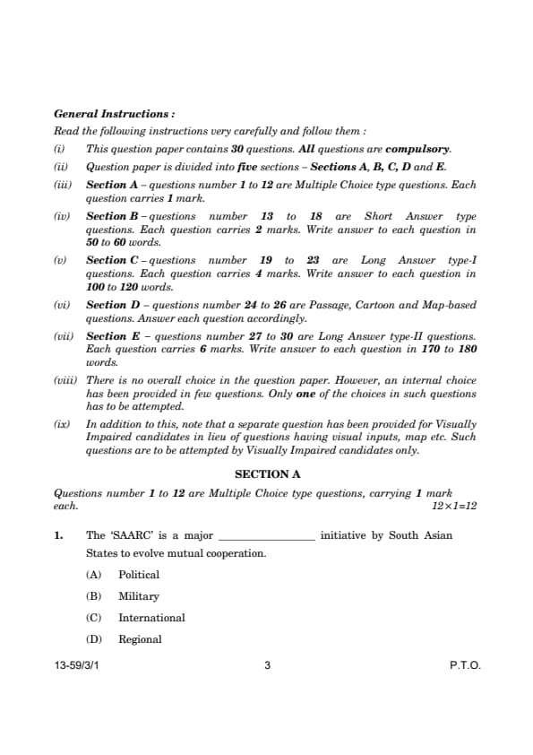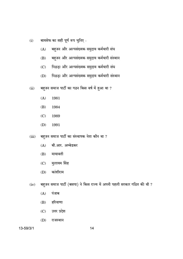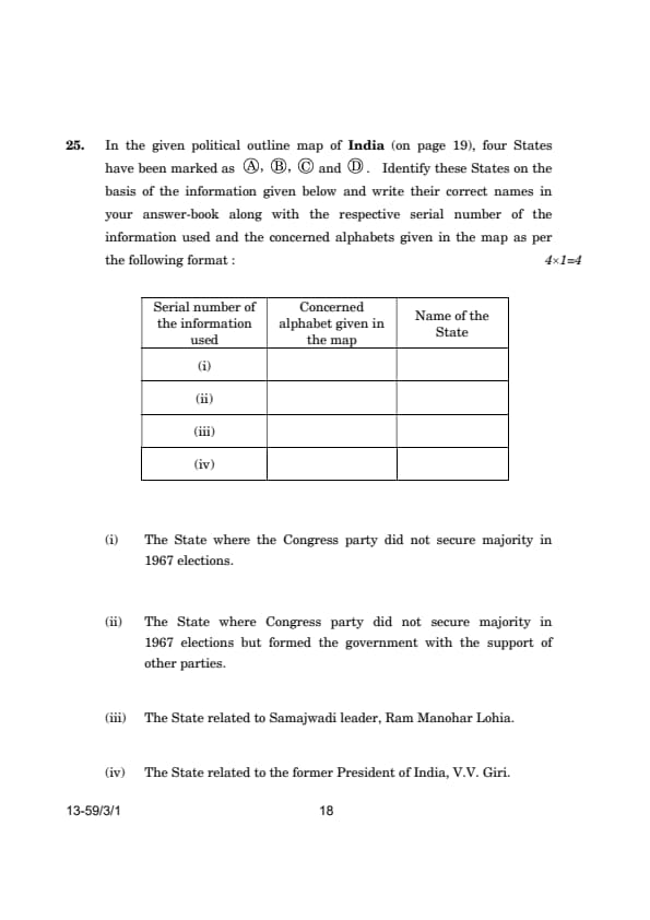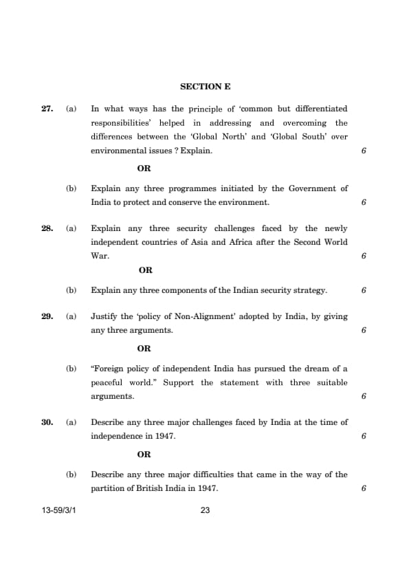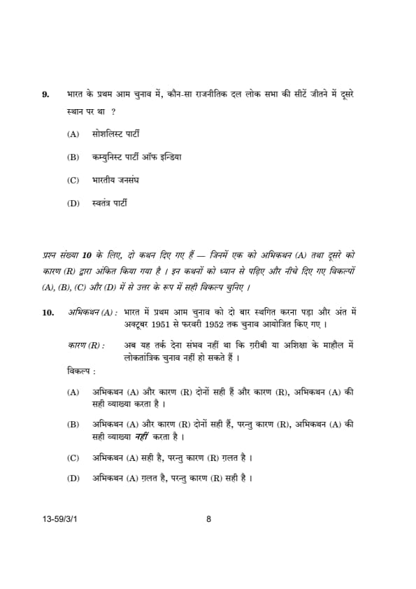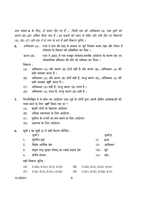 CBSE Class 12 Political Science (59/3/1) Question Paper 2024 with Answer Key