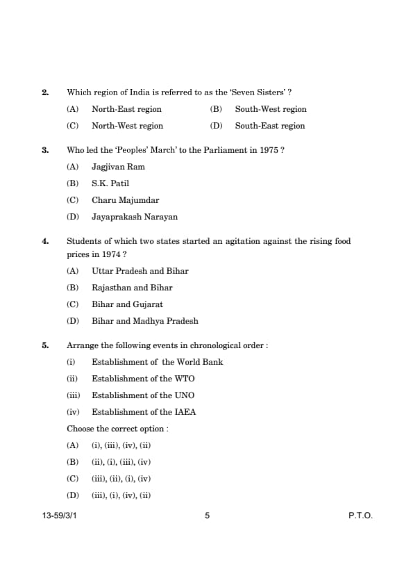 Therefore, the correct option is: (A) (i), (iii), (iv), (ii). Quick Tip: When solving chronological order questions, it's helpful to memorize key years when major international organizations were established, as this can help in faster and more accurate answers.