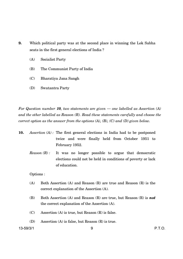 Assertion (A): The first general elections in India had to be postponed twice and were finally held from October 1951 to February 1952.