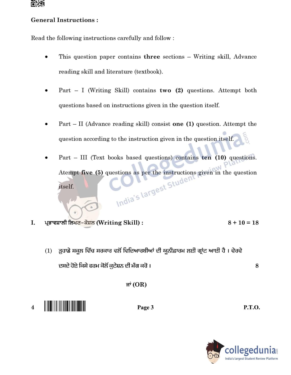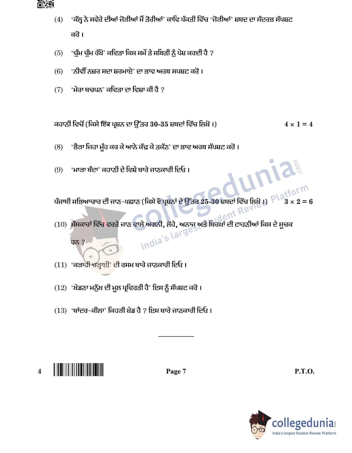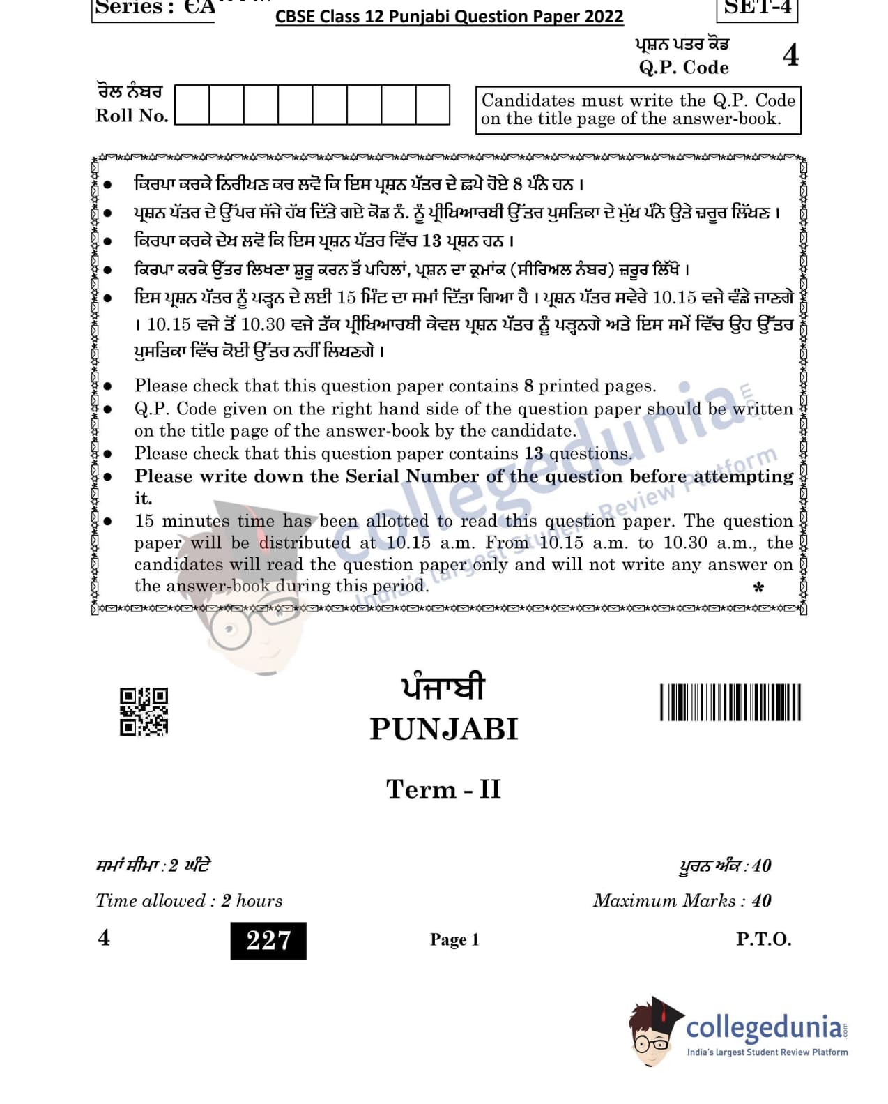 CBSE Class 12 Punjabi Question Paper 2022 with Answer Key (May 11)