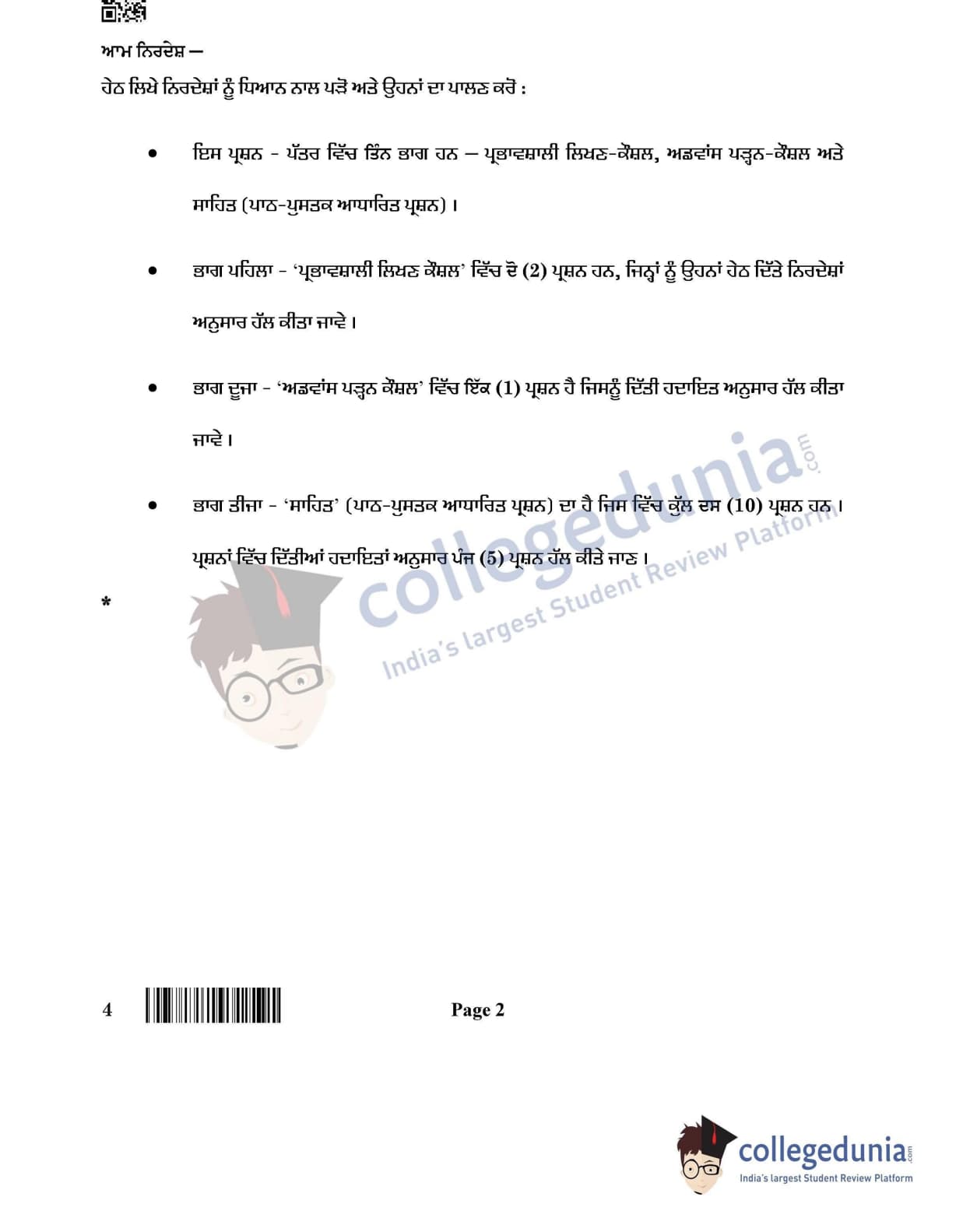 CBSE Class 12 2022 Punjabi Question Paper Set 4 with Answer Key pdf is available for download. The exam was conducted by Central Board of Secondary Education on May 11, 2022 in the Morning Session 10:30 AM to 12:30 PM. The medium of paper was Punjabi. The question paper comprised a total of 13 questions divided among 3 sections.