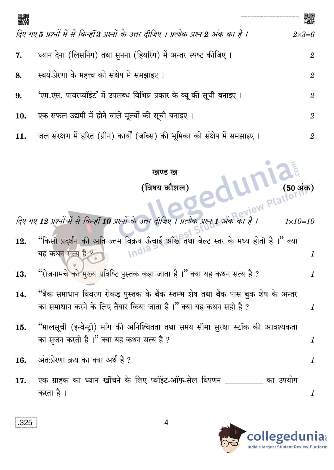 CBSE Class 12 Retail Question Paper 2020 with Answer Key Set 4 is available for download. The exam was conducted by the Central Board of Secondary Education on February 15, 2020 in the Morning Session 10:30 AM to 1:30 PM. The medium of paper was English & Hindi. The question paper comprised a total of 42 questions divided among 2 sections.