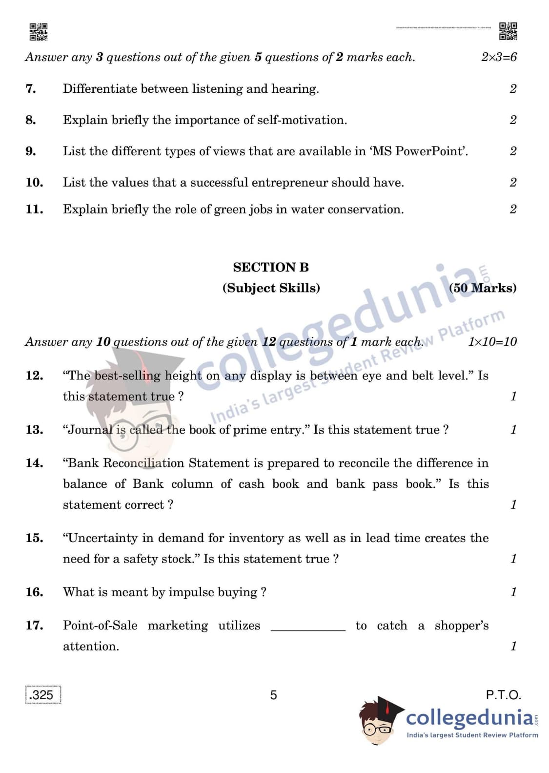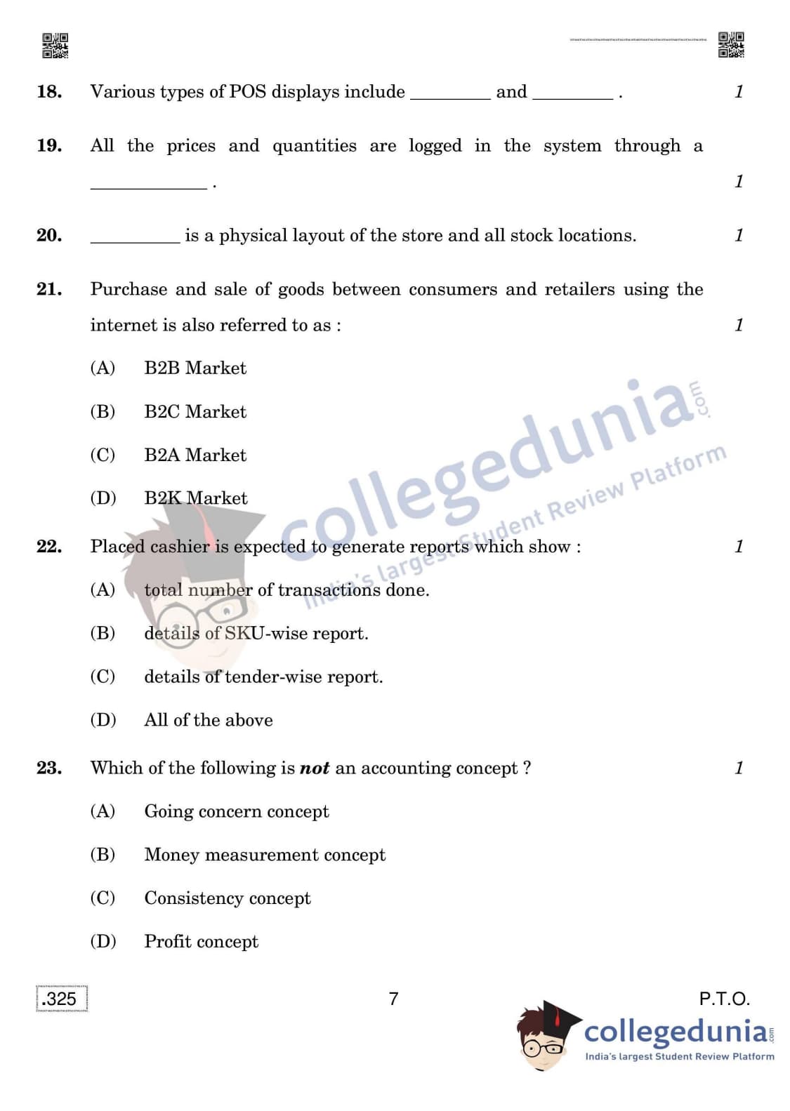 CBSE Class 12 Retail Question Paper 2020 with Answer Key (February 15)