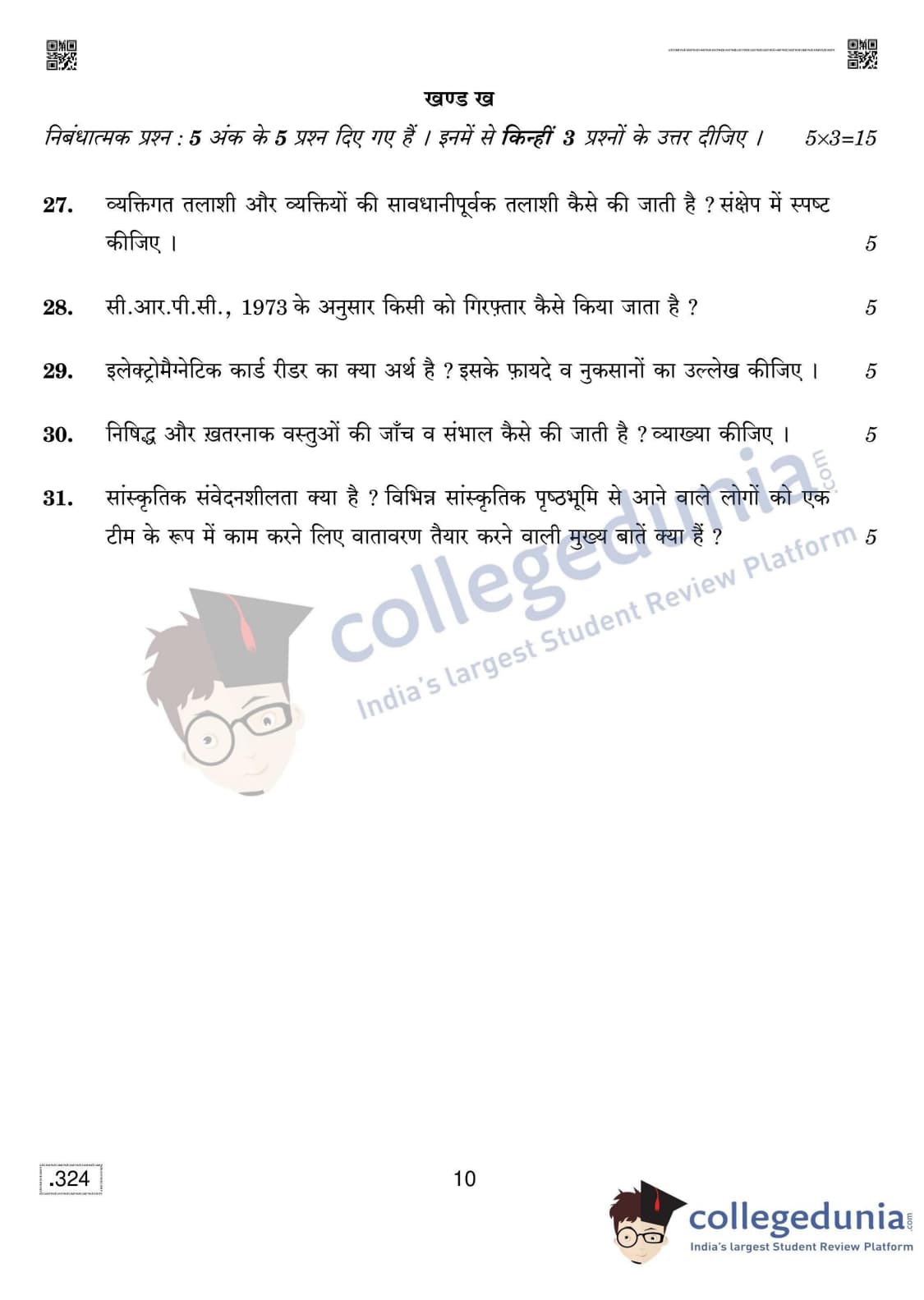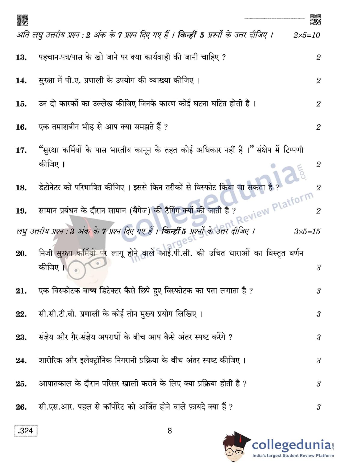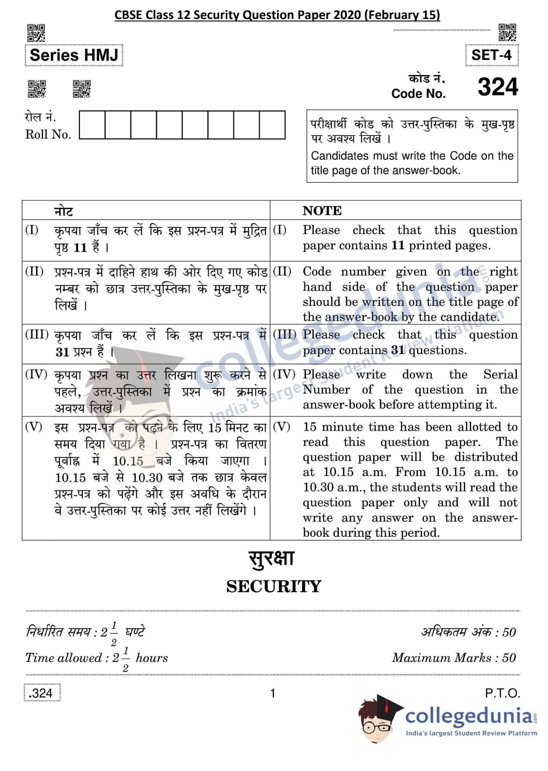 CBSE Class 12 Security Question Paper 2020 with Answer Key Set 4 is available for download. The exam was conducted by the Central Board of Secondary Education on February 15, 2020 in the Morning Session 10:30 AM to 1:30 PM. The medium of paper was English & Hindi. The question paper comprised a total of 31 questions divided among 2 sections.