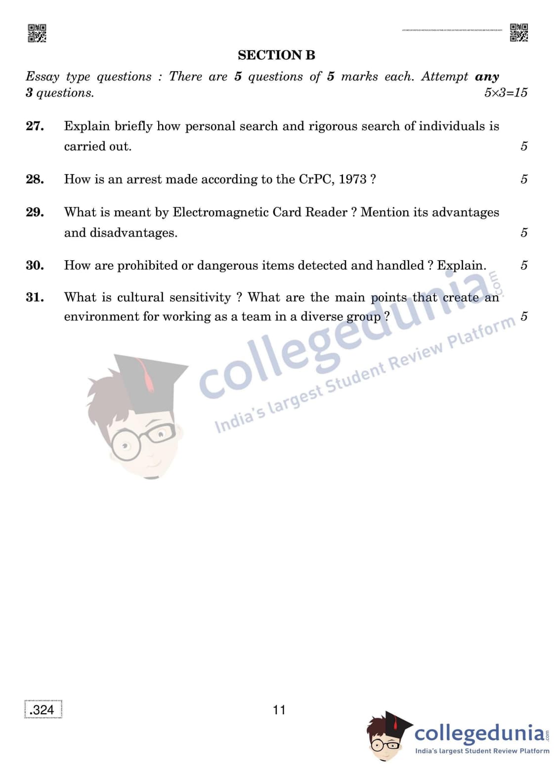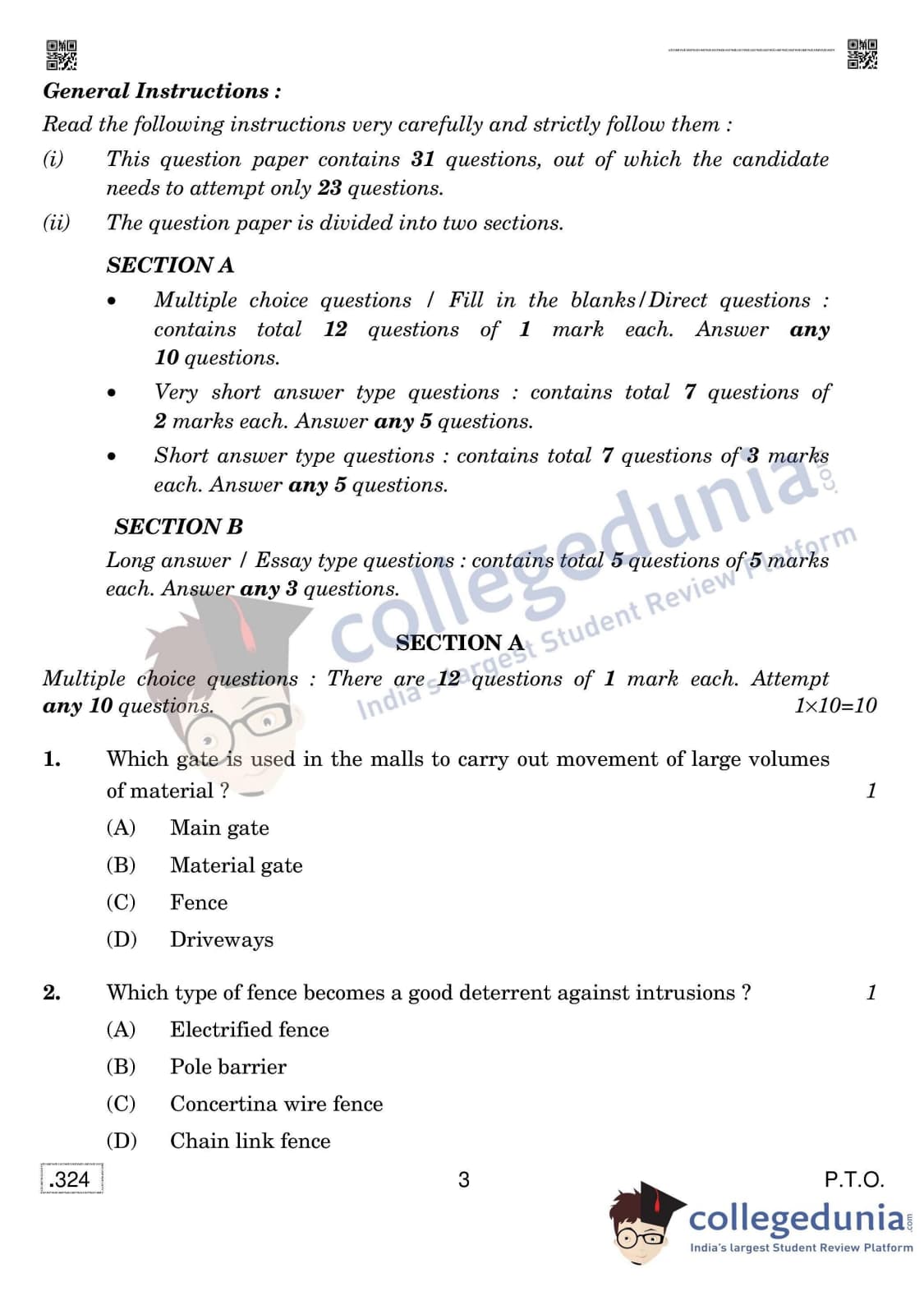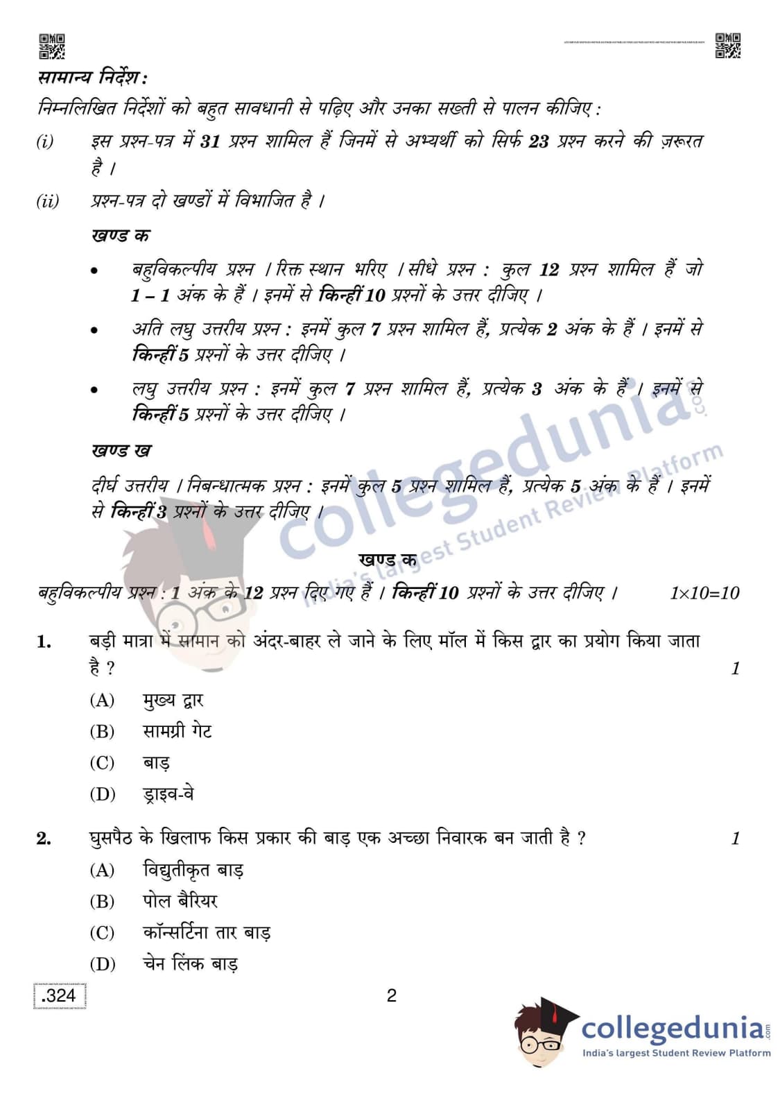 CBSE Class 12 Security Question Paper 2020 with Answer Key Set 4 is available for download. The exam was conducted by the Central Board of Secondary Education on February 15, 2020 in the Morning Session 10:30 AM to 1:30 PM. The medium of paper was English & Hindi. The question paper comprised a total of 31 questions divided among 2 sections.