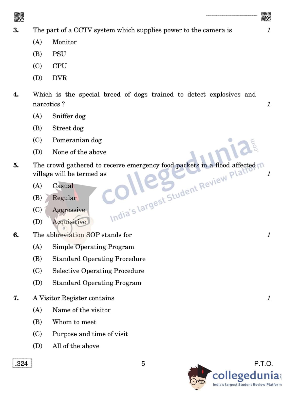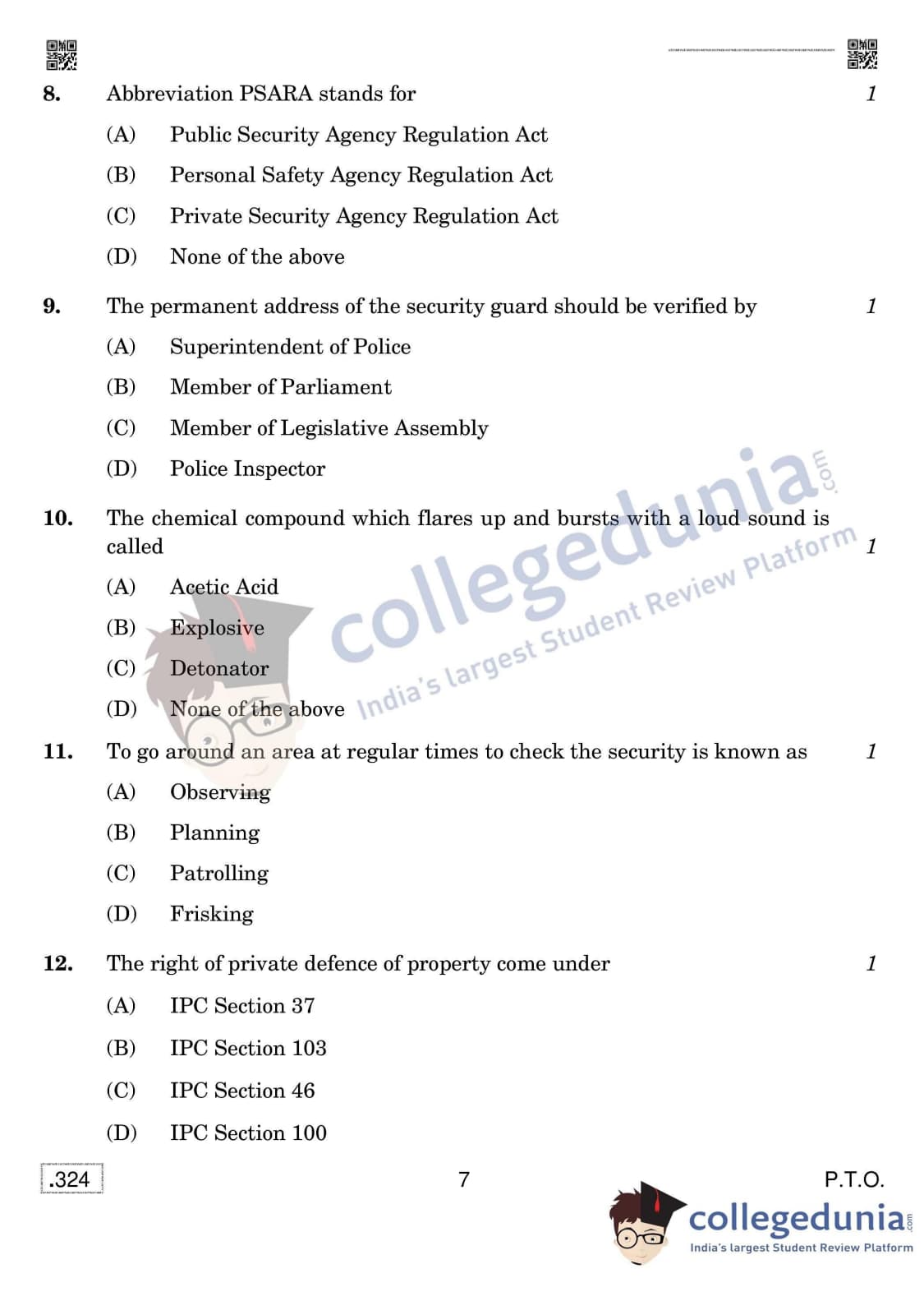 CBSE Class 12 Security Set 4 Question Paper 2020 with Answer Key (February 15)