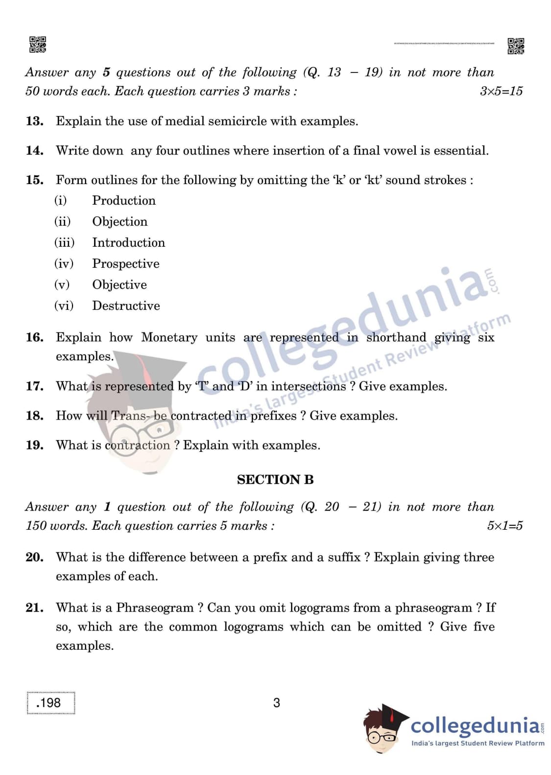 CBSE Class 12 Shorthand (English Old) Question Paper 2020 with Answer Key Set 4 is available for download. The exam was conducted by the Central Board of Secondary Education on March 18, 2020 in the Morning Session 10:30 AM to 12:30 PM. The medium of paper was English. The question paper comprised a total of 21 questions divided among 2 sections.
