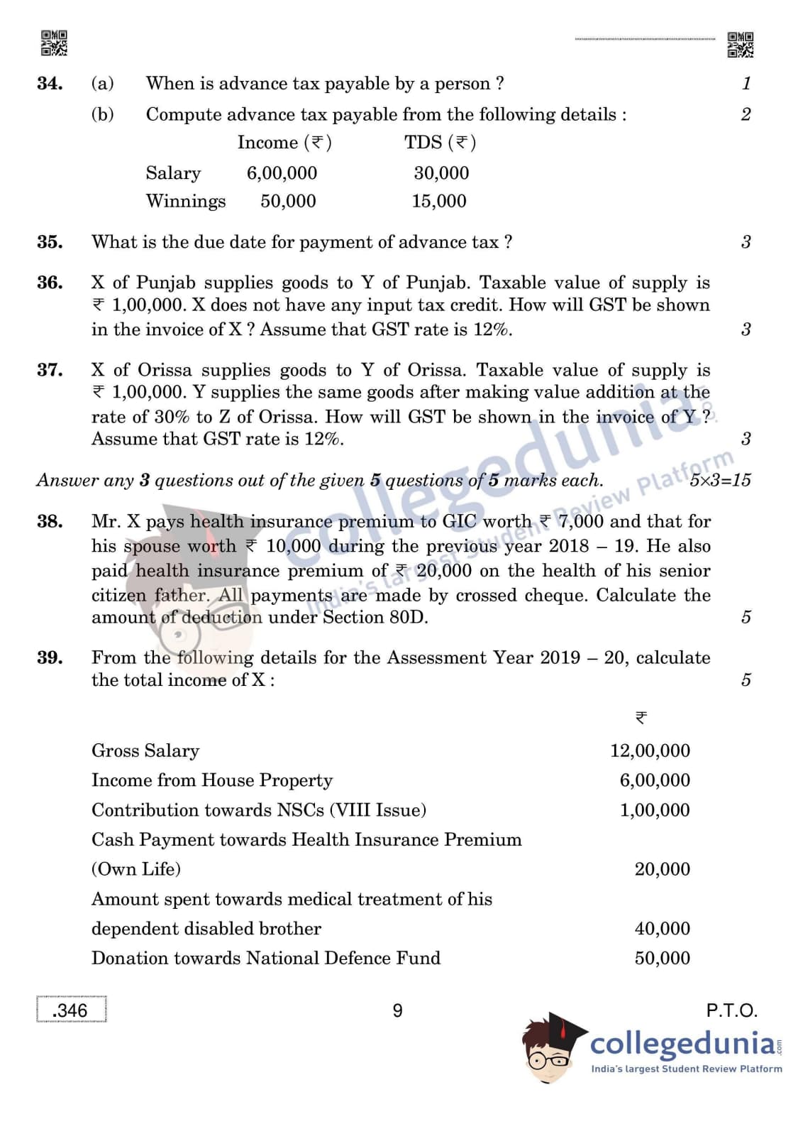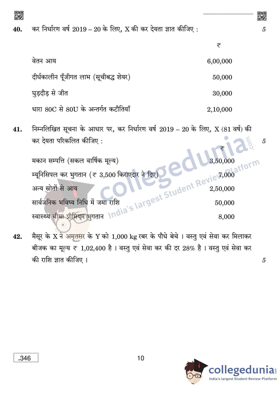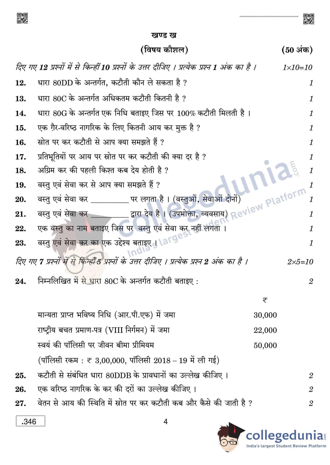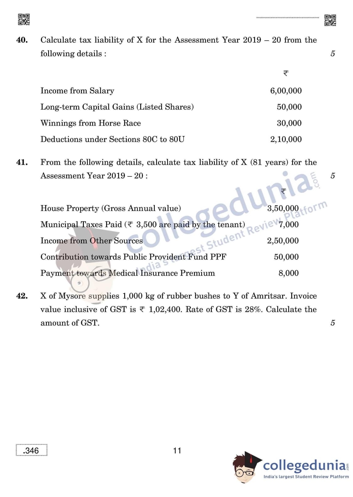 CBSE Class 12 Taxation Set 4 Question Paper 2020 with Answer Key (March 16)