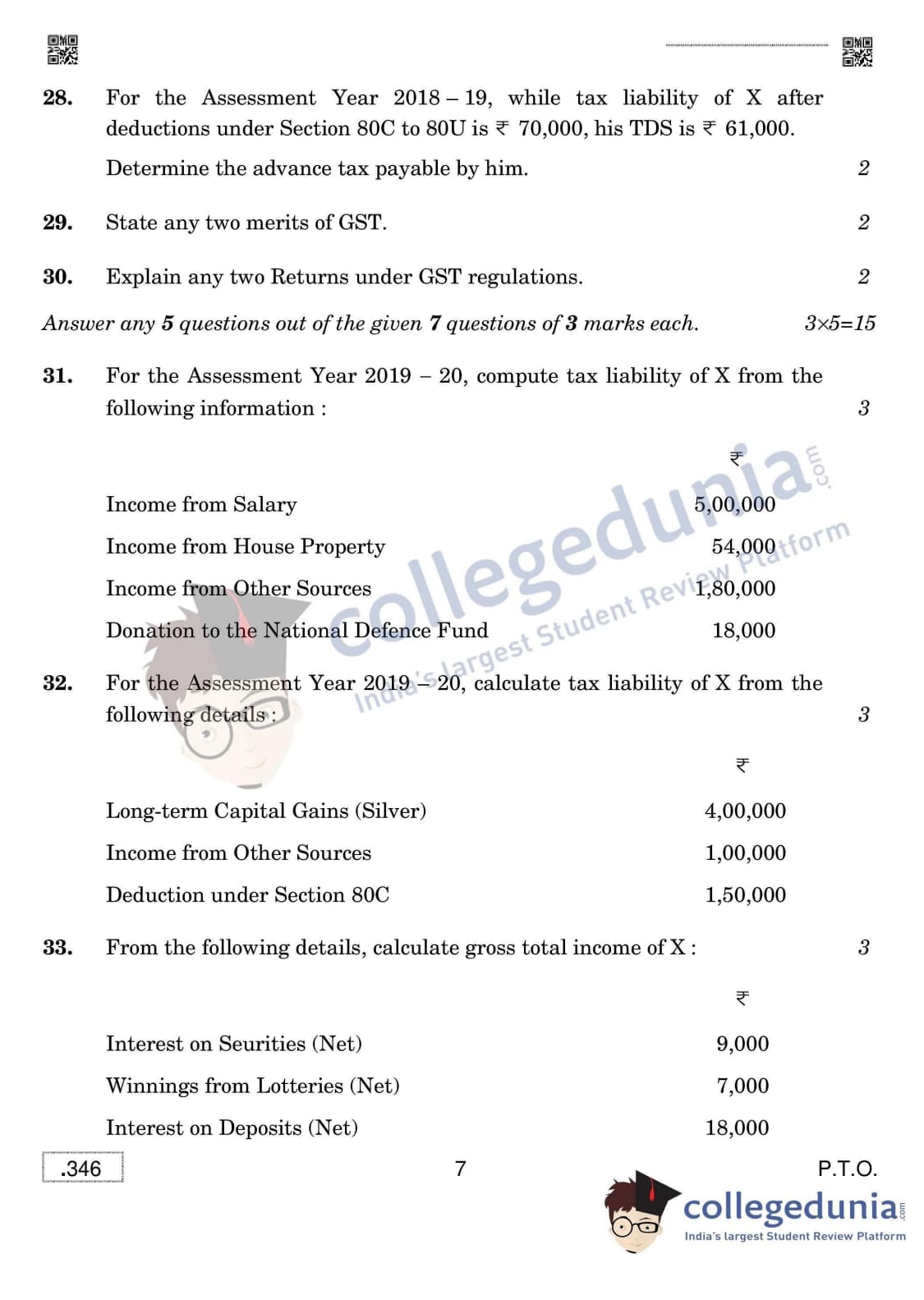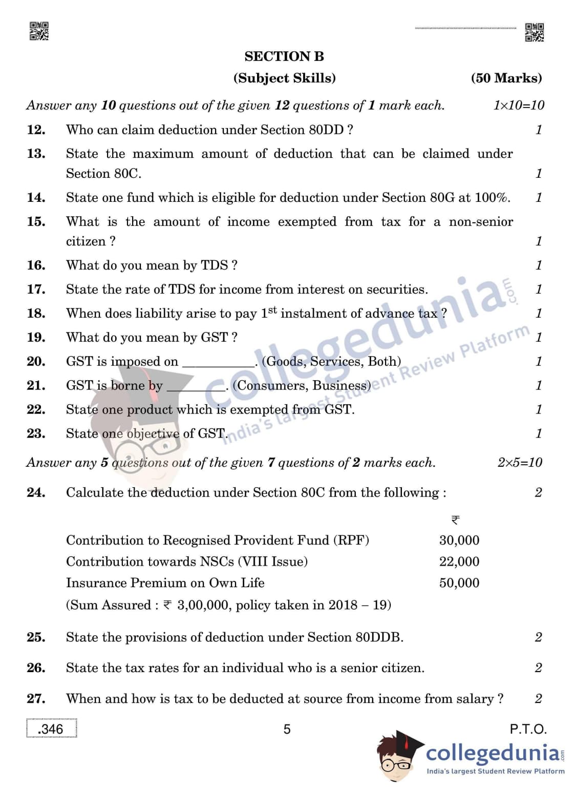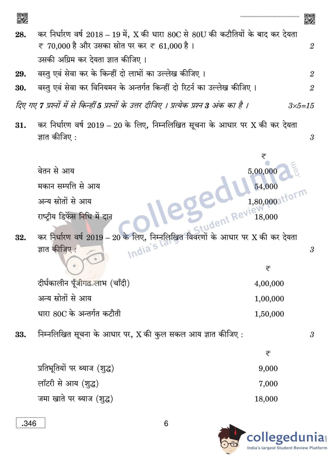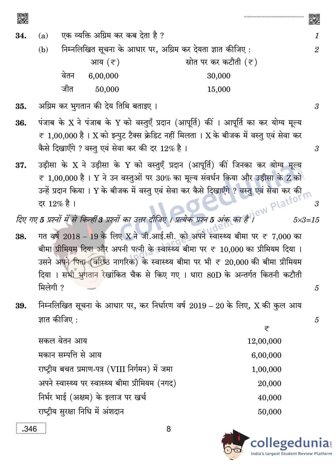CBSE Class 12 Taxation Set 4 Question Paper 2020 with Answer Key (March 16)