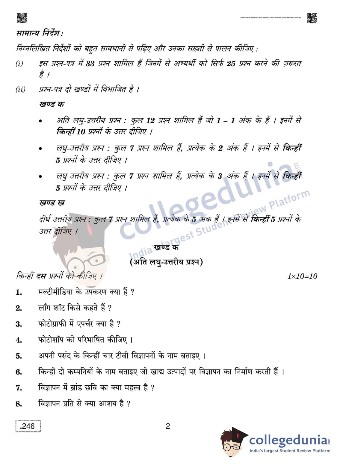 | CBSE Class 12 The Creative And Commercial Process In Mass Media Question Paper 2020 PDF | CBSE Class 12 The Creative And Commercial Process In Mass Media Answer Key 2020 PDF |