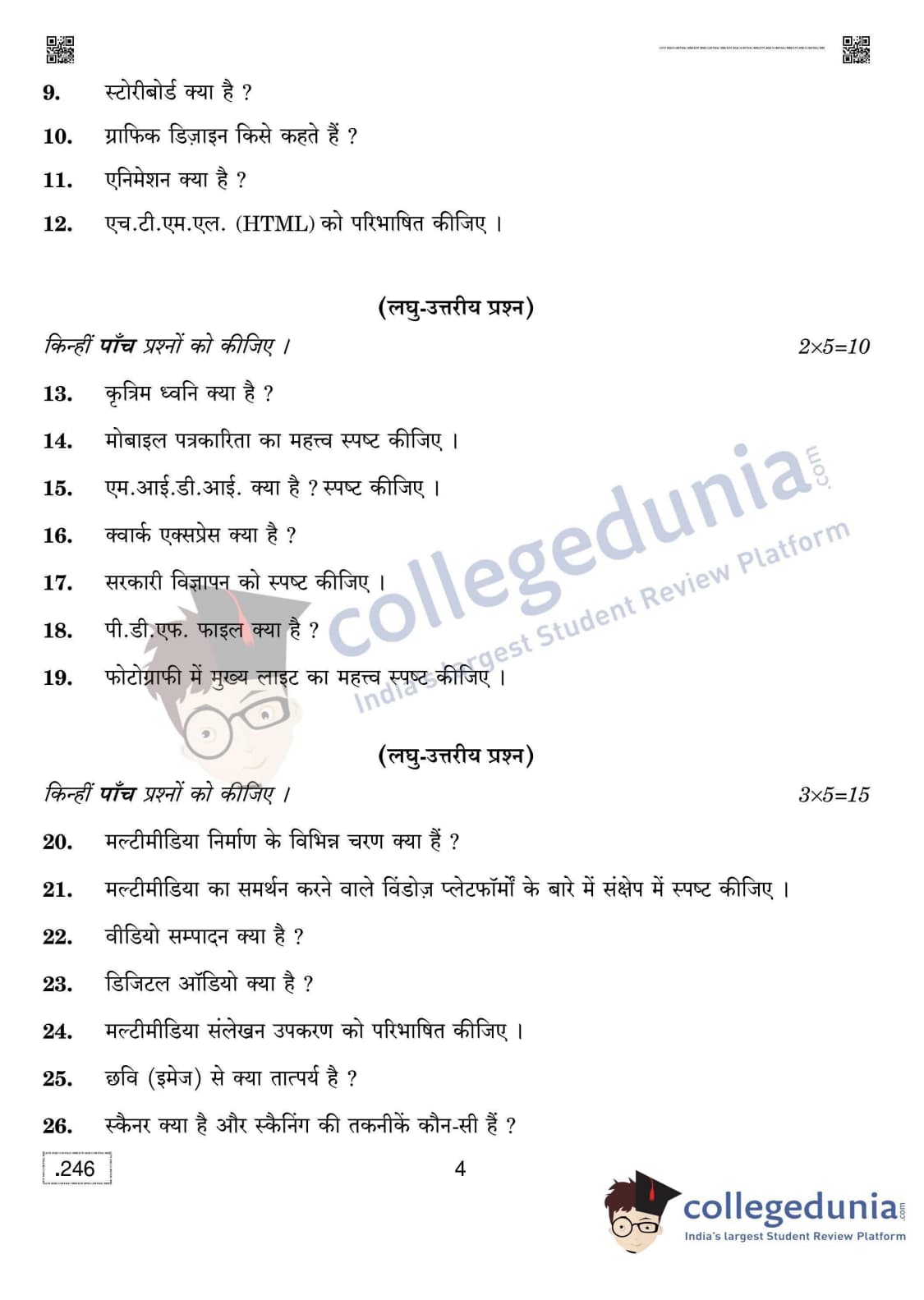 CBSE Class 12 The Creative And Commercial Process In Mass Media Question Paper 2020 with Answer Key Set 4 is available for download. The exam was conducted by the Central Board of Secondary Education in the Morning Session 10:30 AM to 1:30 PM. The medium of paper was English & Hindi. The question paper comprised a total of 33 questions divided among 2 sections.