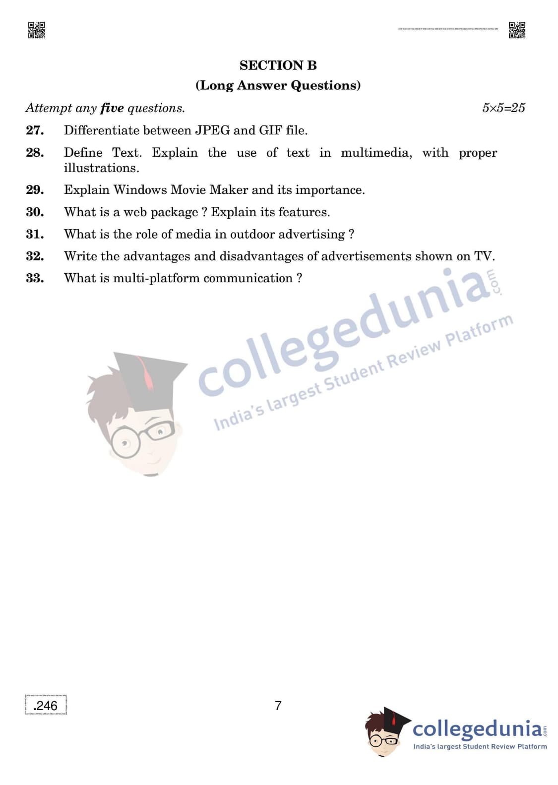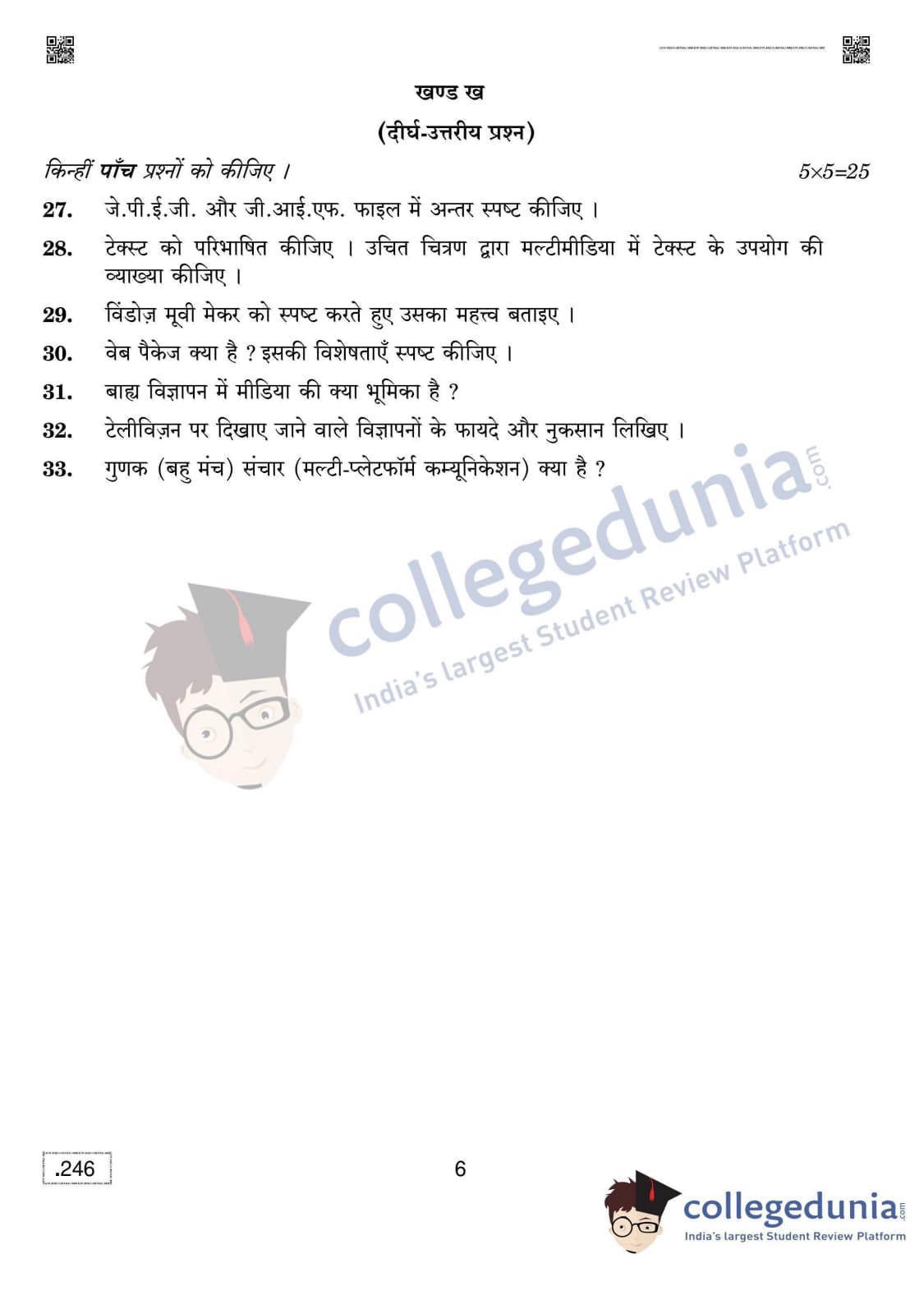 CBSE Class 12 The Creative And Commercial Process In Mass Media Question Paper 2020 with Answer Key