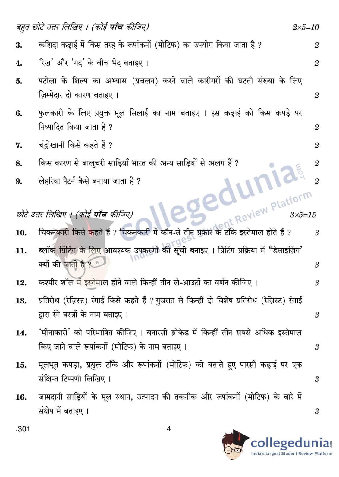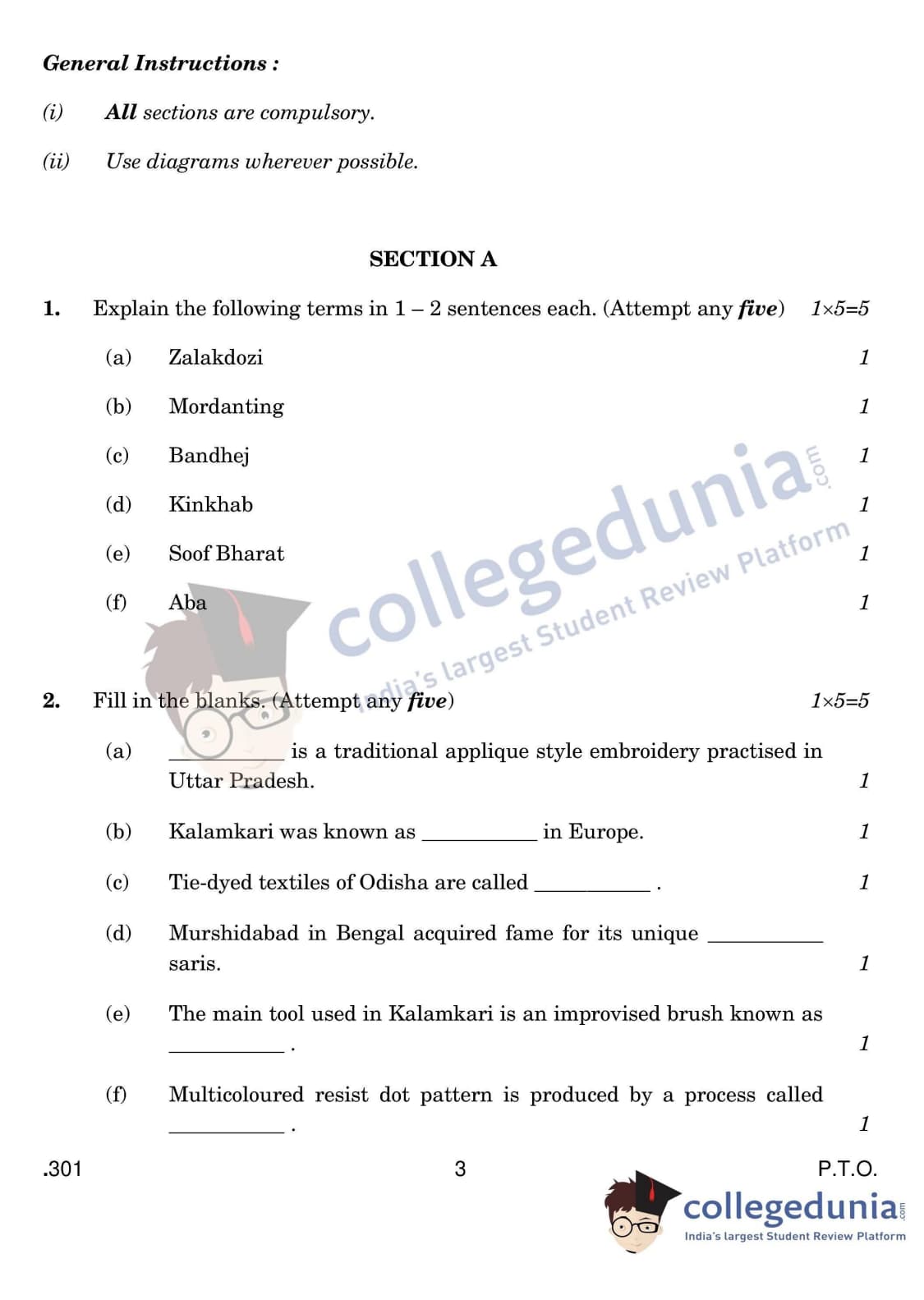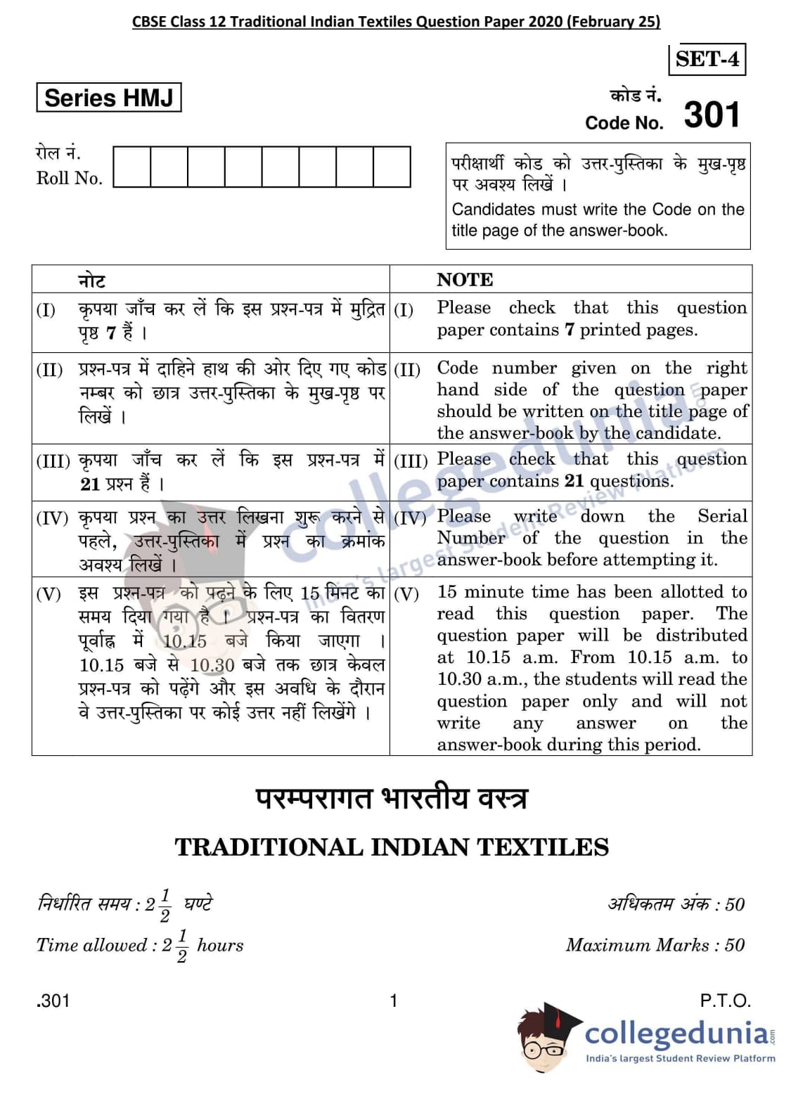 CBSE Class 12 Traditional Indian Textiles Set 4 Question Paper 2020 with Answer Key (February 25)