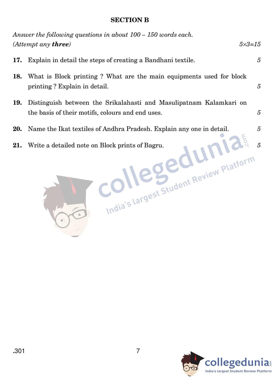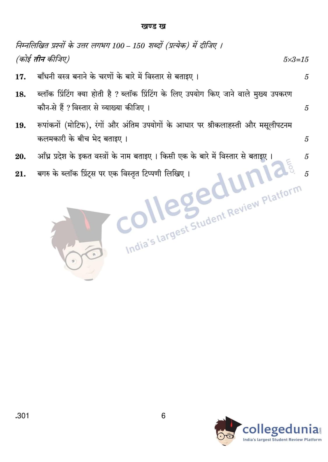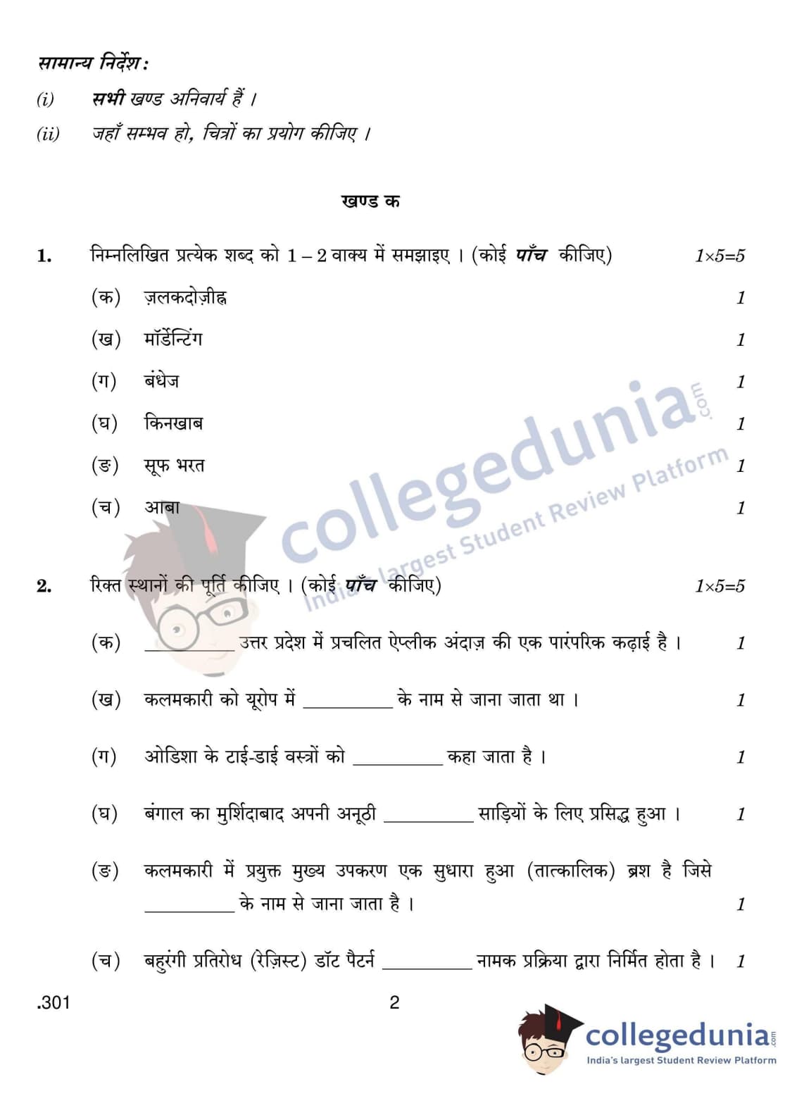 CBSE Class 12 Traditional Indian Textiles Set 4 Question Paper 2020 with Answer Key (February 25)