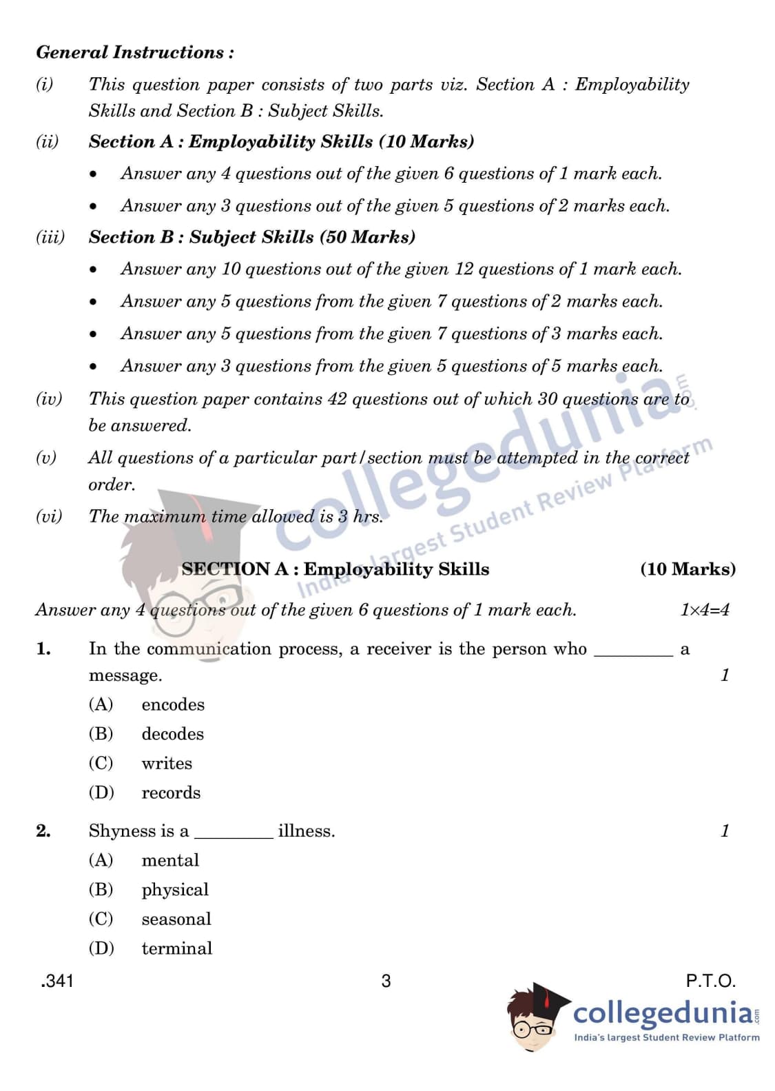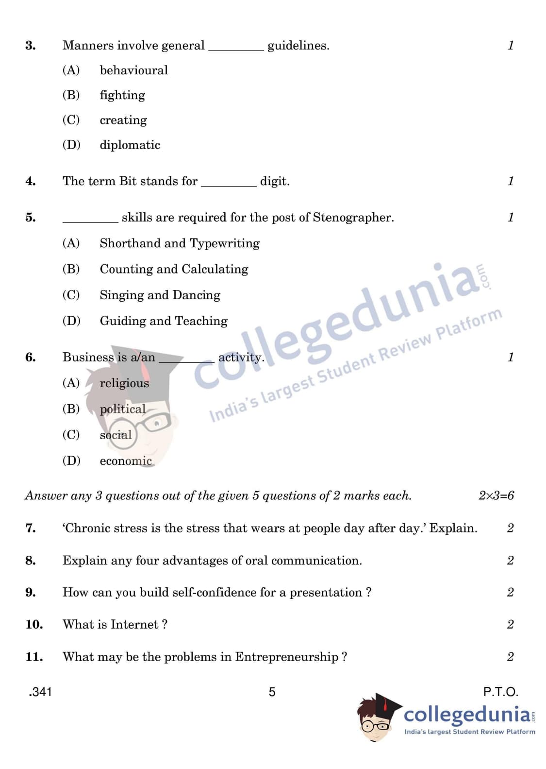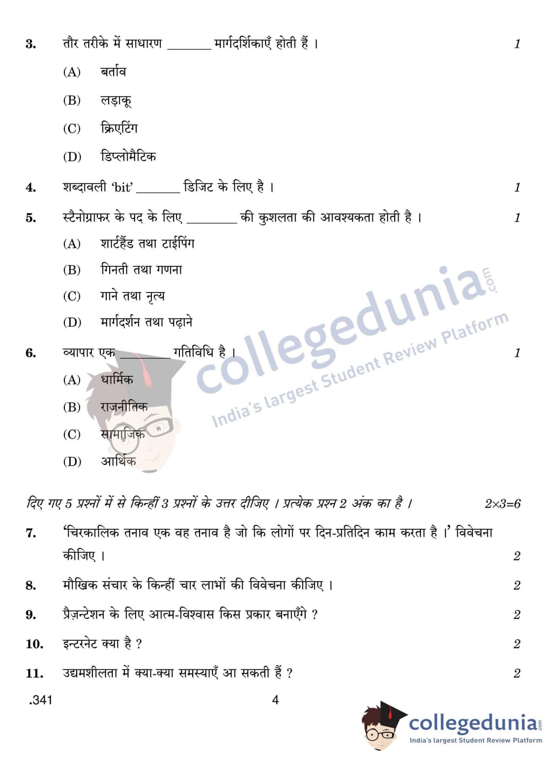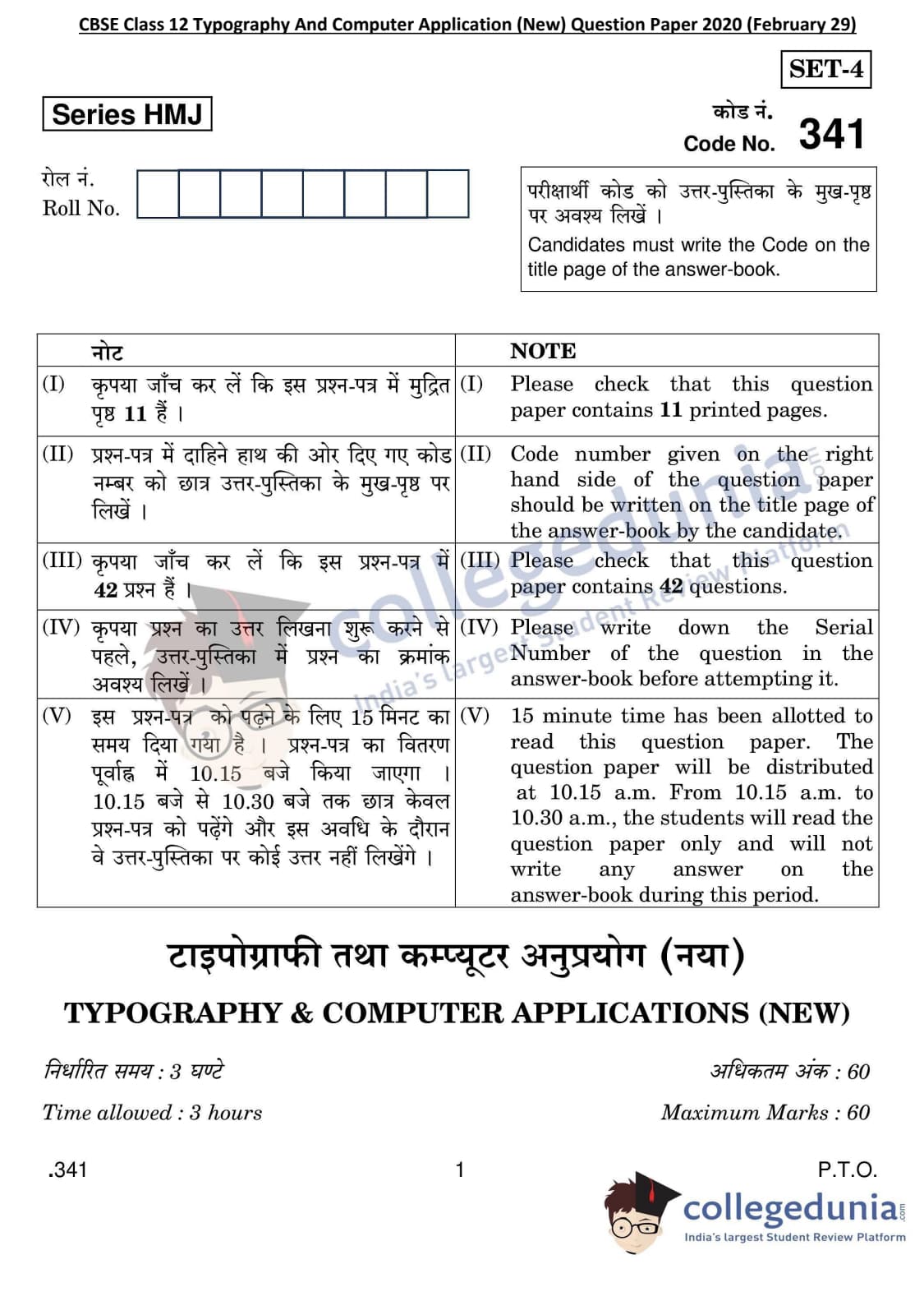 CBSE Class 12 Typography And Computer Application (New) Set 4 Question Paper 2020 with Answer Key (February 29)