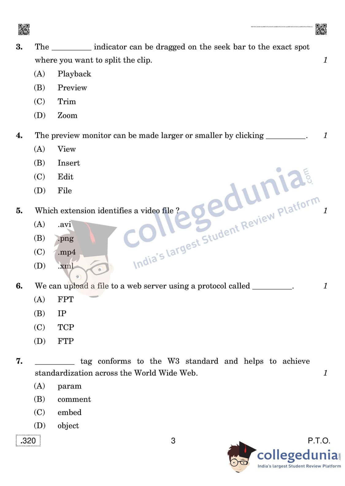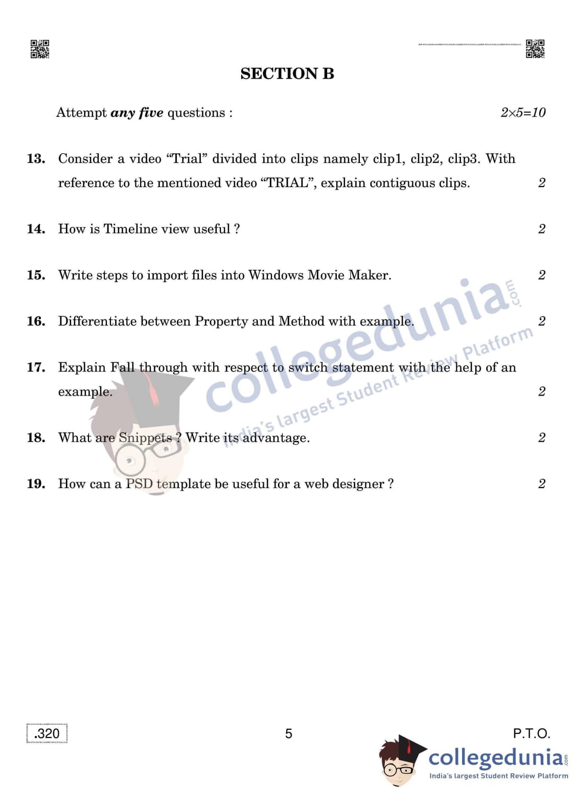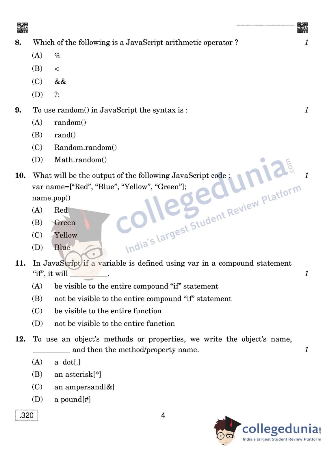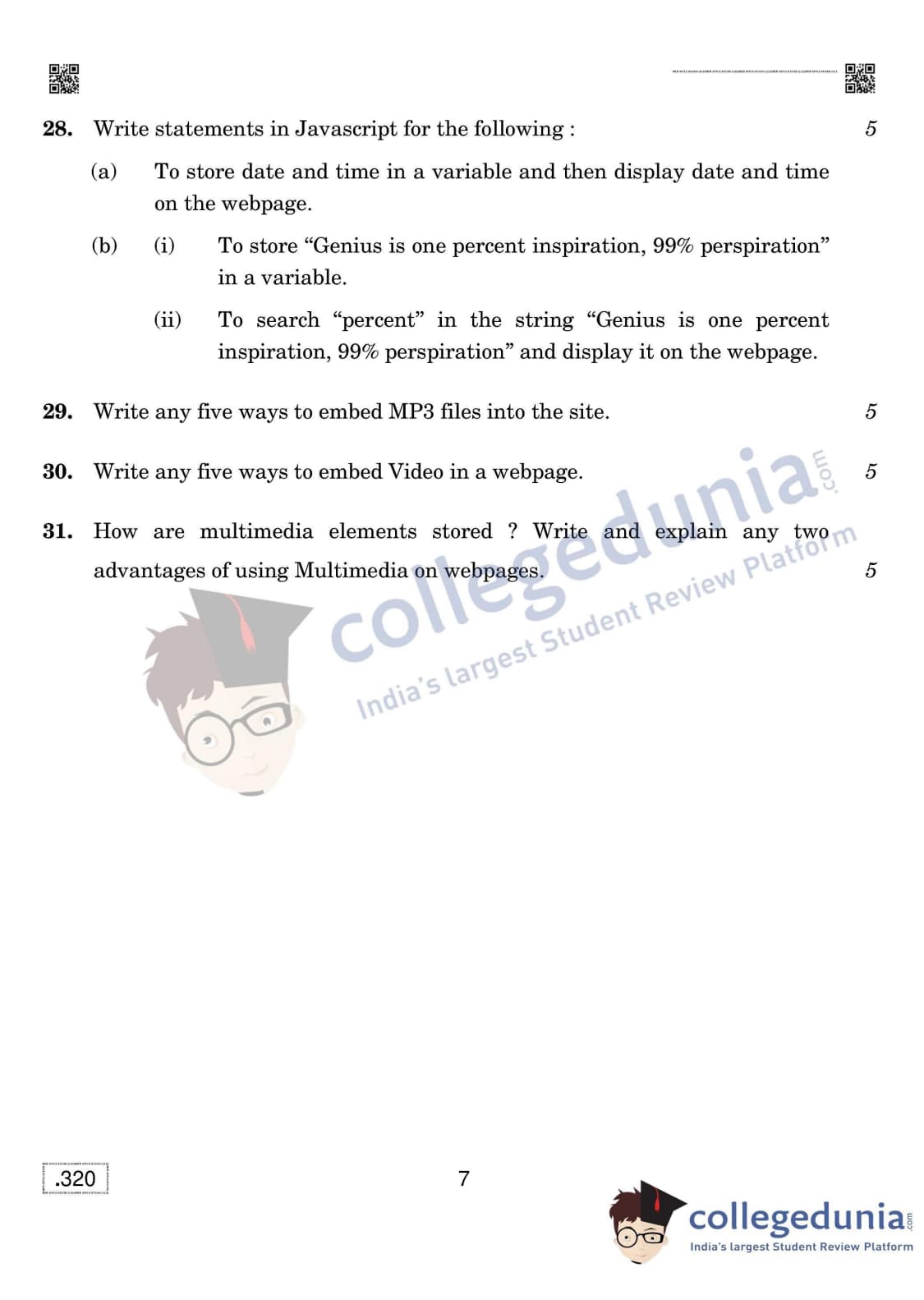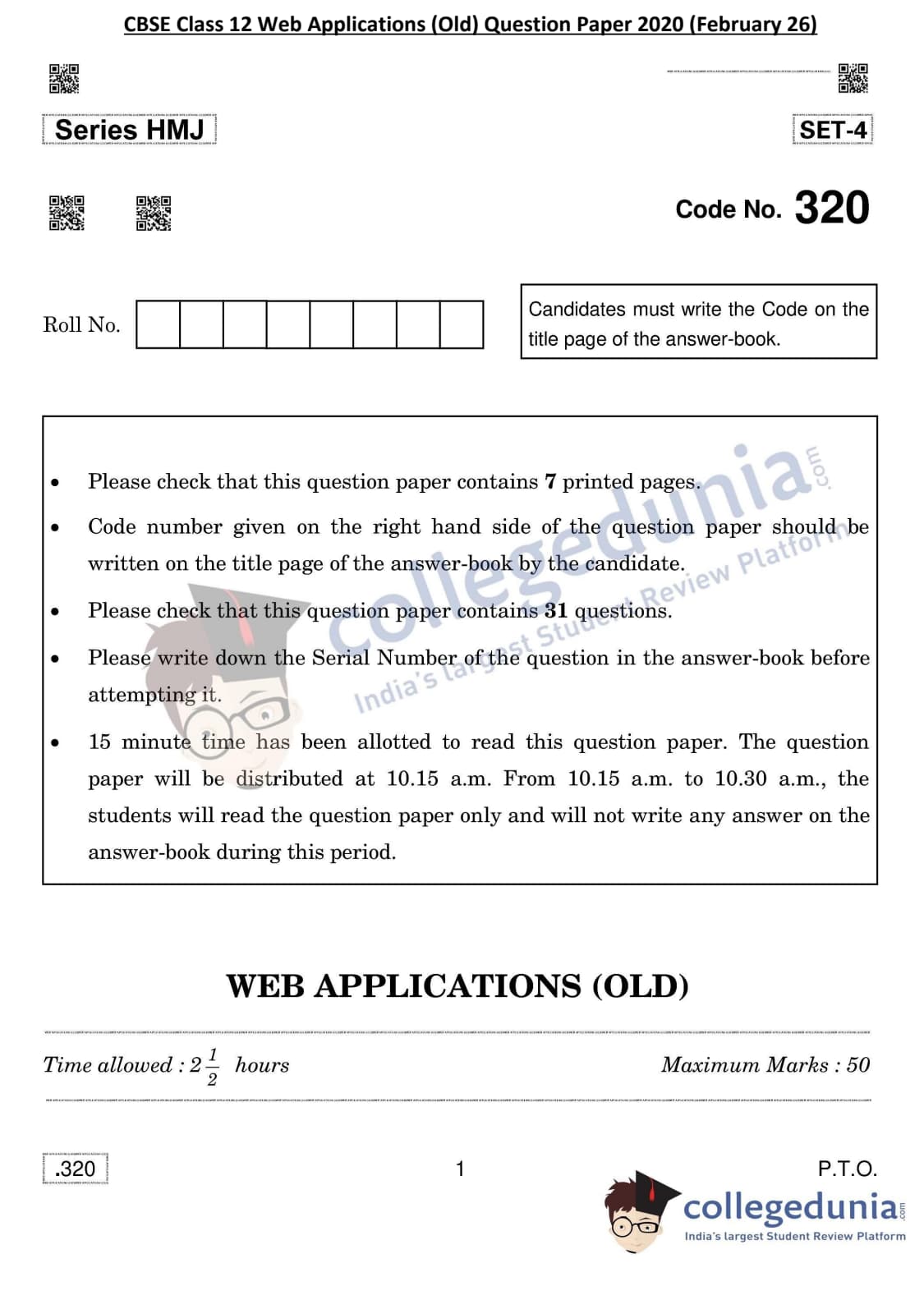 CBSE Class 12 Web Applications (Old) Set 4 Question Paper 2020 with Answer Key (February 26)