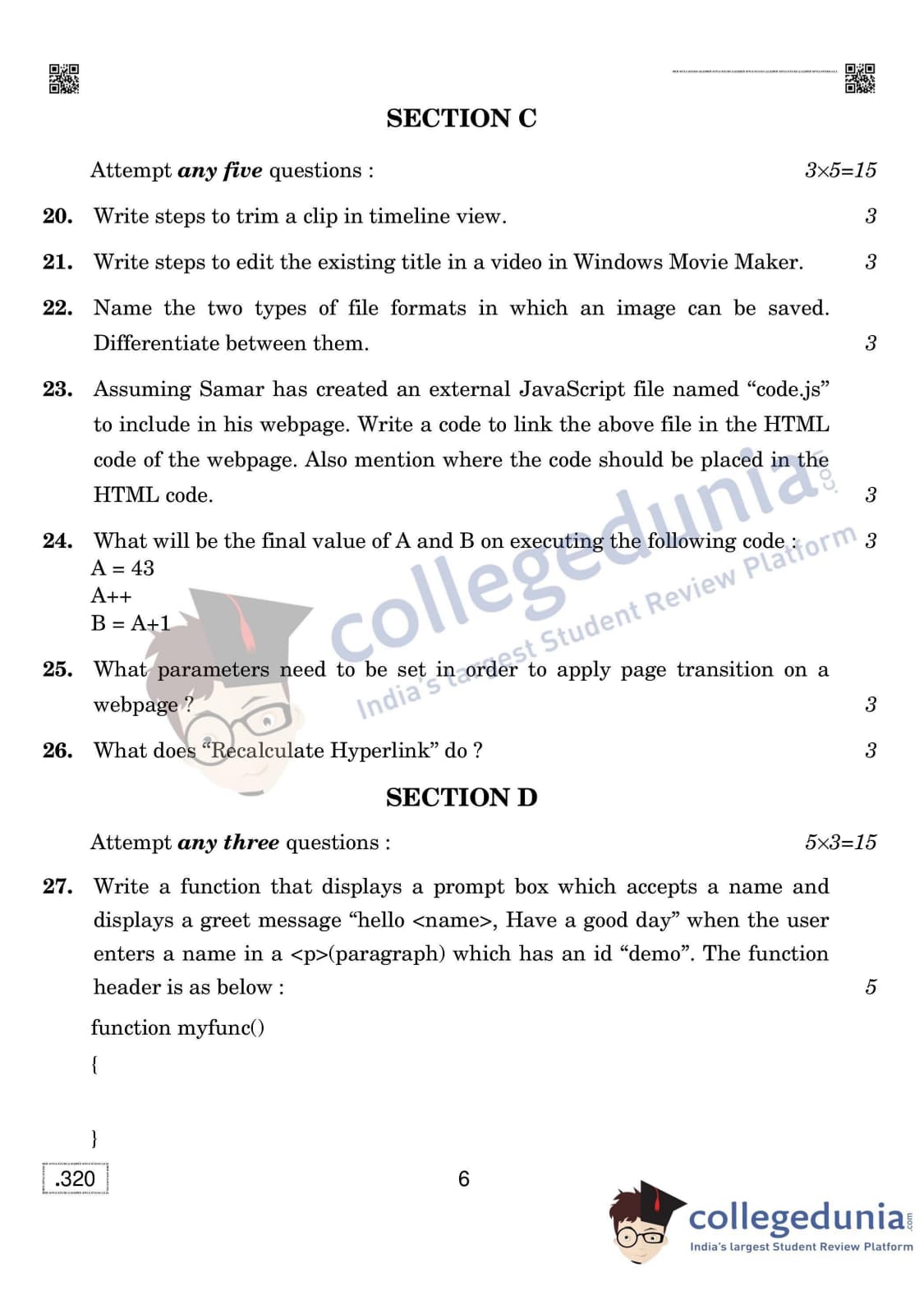 CBSE Class 12 Web Applications (Old) Question Paper 2020 with Answer Key Set 4 is available for download. The exam was conducted by the Central Board of Secondary Education on February 26, 2020 in the Morning Session 10:30 AM to 1:00 PM. The medium of paper was English. The question paper comprised a total of 31 questions divided among 2 sections.