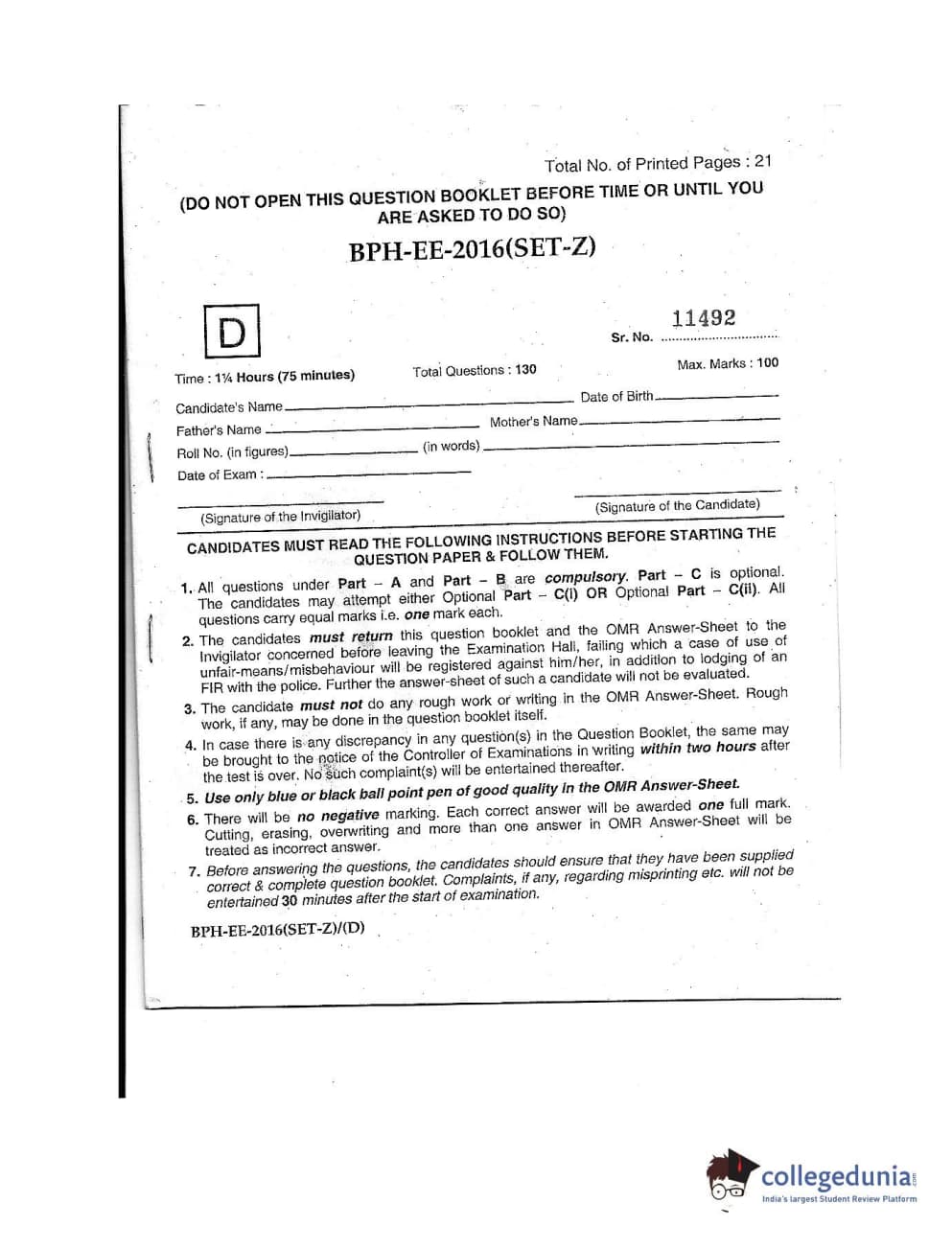 MDUCEE 2016 B.Pharmacy Set D Question paper with answer key pdf is available for download. The exam was successfully organized by Maharishi Dayanand University. The question paper comprised a total of 130 questions.