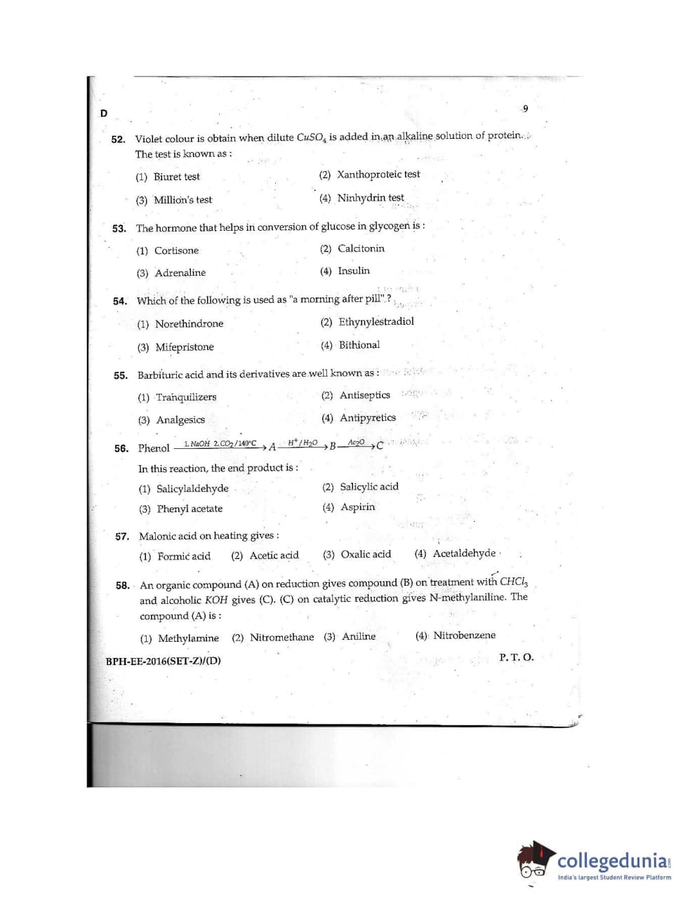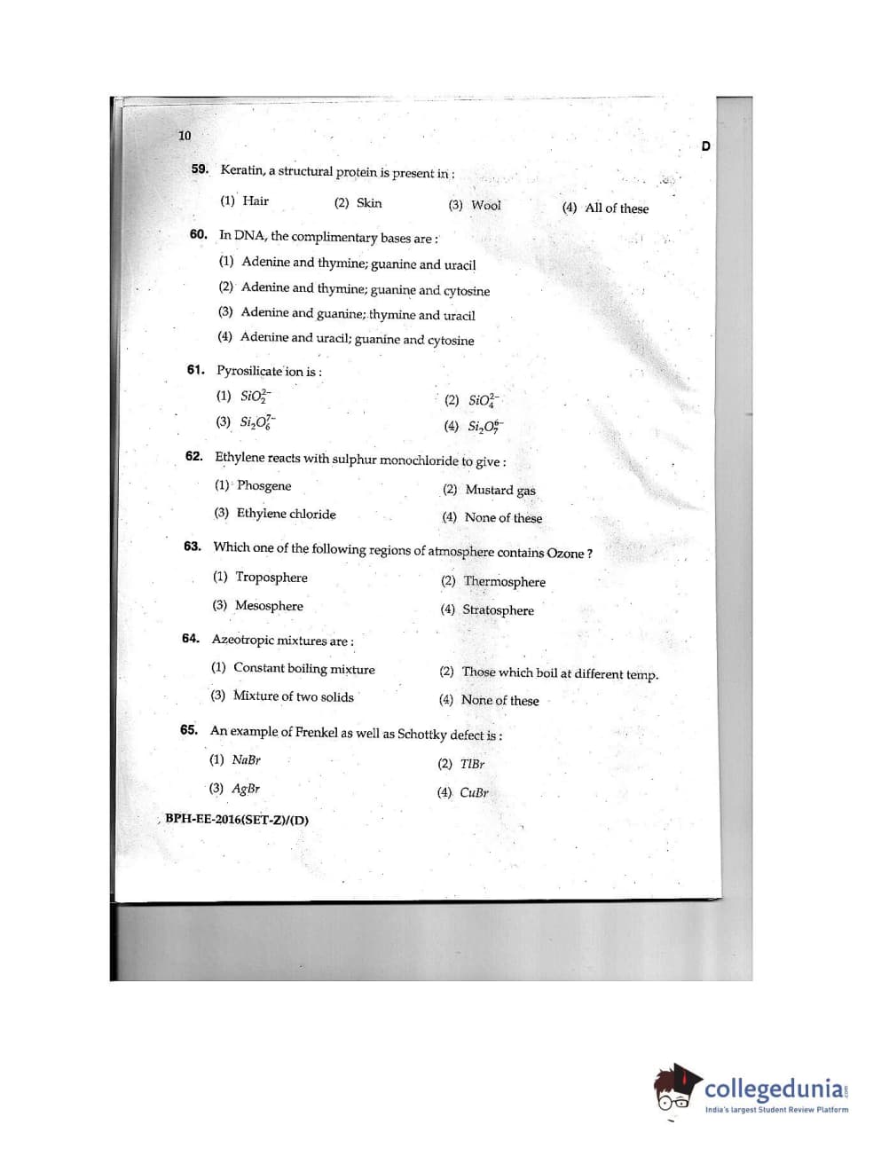 MDUCEE 2016 B.Pharmacy Set D Question Paper with Answer Key PDFs